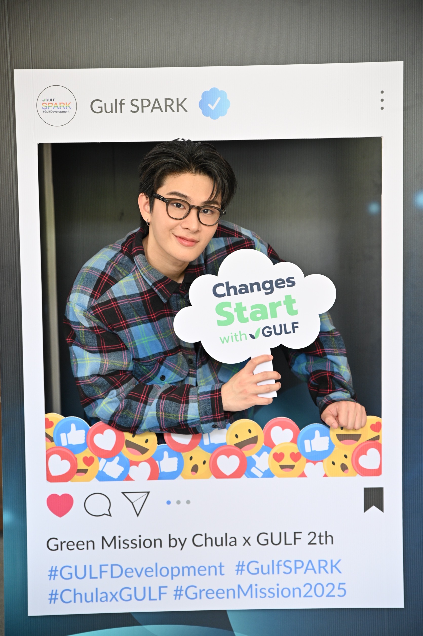 นายชญานนท์ ภาคฐิน สมาชิกวง BUS กล่าวว่า “วันนี้ไทยดีใจมากที่ได้มาร่วมเปิดงานโครงการ Green Mission by Chula x GULF ภารกิจรักษ์ยั่งยืน ปีที่ 2 ต้องขอบคุณ GULF ที่ชวนไทยมางานนี้ และให้โอกาสพี่ได้เจอกับน้องๆ คนรุ่นใหม่ที่เชื่อในพลังของการเปลี่ยนแปลงเพื่อโลกของเราครับ ทุกการทดลอง ทุกความคิดสร้างสรรค์คือจุดเริ่มต้นของการเปลี่ยนแปลงที่ยิ่งใหญ่ในวันข้างหน้า ขอร่วมส่งพลังแห่งกำลังใจ และอยากบอกอีกว่าดีใจมากๆ ที่ได้เห็นพลังคนรุ่นใหม่ที่มาร่วมกันระดมความคิดไอเดียสุดเจ๋งเพื่อโลกของเรา เพราะทุกคนคือพลังของวันพรุ่งนี้ครับ ขอบคุณทาง GULF และจุฬาฯ ที่จัดโครงการนี้เป็นพื้นที่ Sandbox ให้น้องๆ มีโอกาสได้คิดสร้างสรรค์สิ่งใหม่ ๆ ครับ”