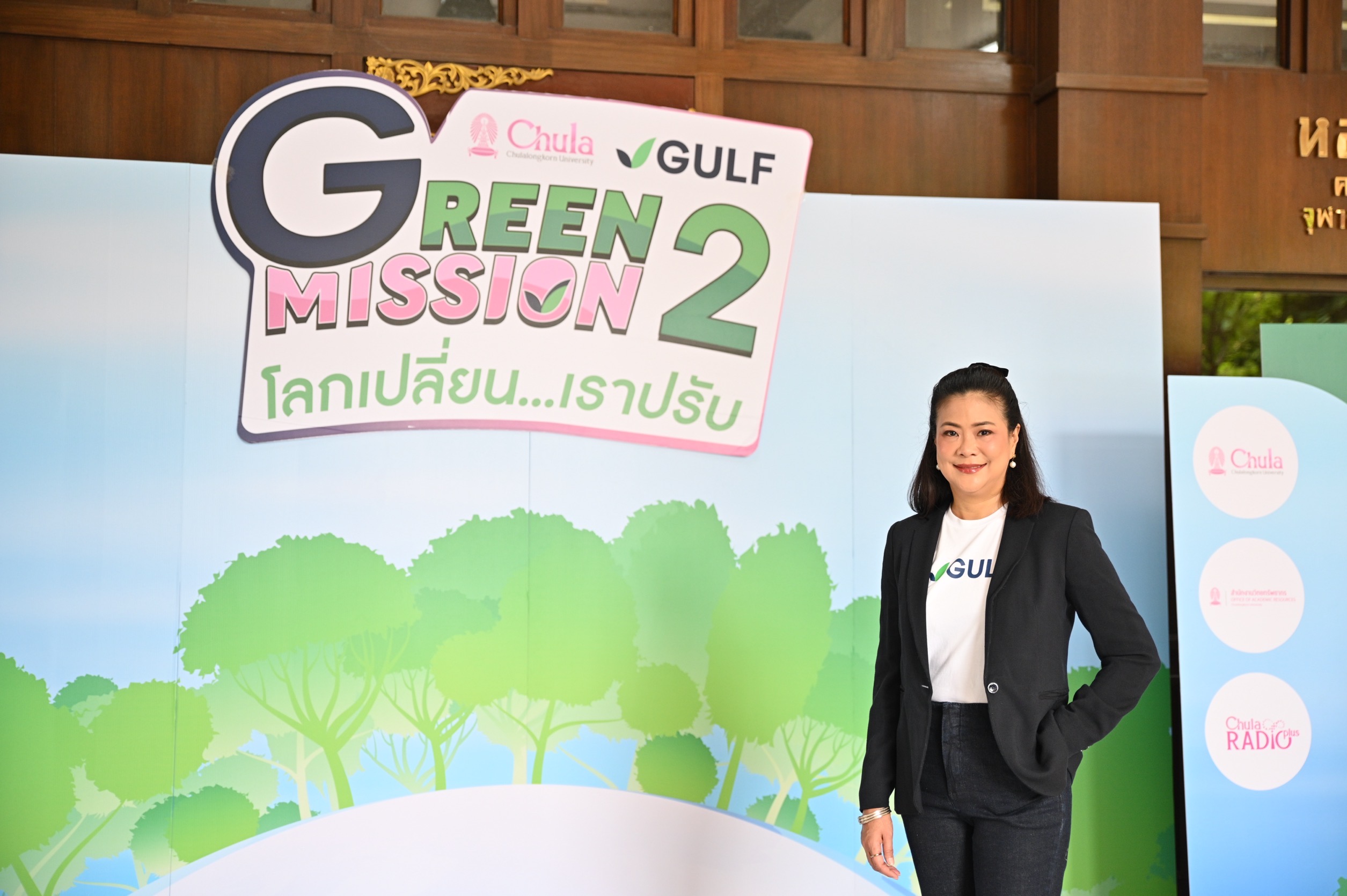 นางสาวธีรตีพิศา เตวิชพศุตม์ รองกรรมการผู้จัดการใหญ่ และประธานเจ้าหน้าที่บริหารด้านปฏิบัติการ บริษัท กัลฟ์ ดีเวลลอปเมนท์ จำกัด (มหาชน) กล่าวถึงความร่วมมือครั้งนี้ว่า กลุ่มบริษัทกัลฟ์ยินดีที่ได้ร่วมสานต่อโครงการ Green Mission by Chula x GULF เป็นปีที่ 2 เป็นเวทีที่น้อง ๆ จะได้แสดงออกถึงศักยภาพอย่างเต็มที่ ทางกัลฟ์พร้อมสนับสนุนและผลักดันแนวคิดที่เกิดขึ้นจากโครงการนี้ ที่จะเป็นประโยชน์และสร้างความเปลี่ยนแปลงที่ดีขึ้นให้กับโลก กัลฟ์เชื่อมั่นในศักยภาพและความสามารถของเยาวชนทุกคนในการสร้างสรรค์นวัตกรรมที่จะเป็นกำลังสำคัญในการขับเคลื่อนสังคมไปสู่ความยั่งยืนในอนาคต โครงการนี้ยังสอดคล้องกับพันธกิจของกัลฟ์เรื่องการจัดการสภาพภูมิอากาศ เรามุ่งลดการปล่อยก๊าซเรือนกระจก (Decarbonization) ซึ่งเป็นส่วนหนึ่งของเป้าหมายการดำเนินธุรกิจอย่างยั่งยืน รวมไปถึงการสนับสนุนการเปลี่ยนผ่านด้านพลังงาน (Energy Transition) เพิ่มสัดส่วนพลังงานหมุนเวียน เพื่อให้บรรลุเป้าหมายการพัฒนาที่ยั่งยืน (SDGs) และสอดคล้องกับแผนการรับมือการเปลี่ยนแปลงสภาพภูมิอากาศในระดับประเทศและระดับโลก