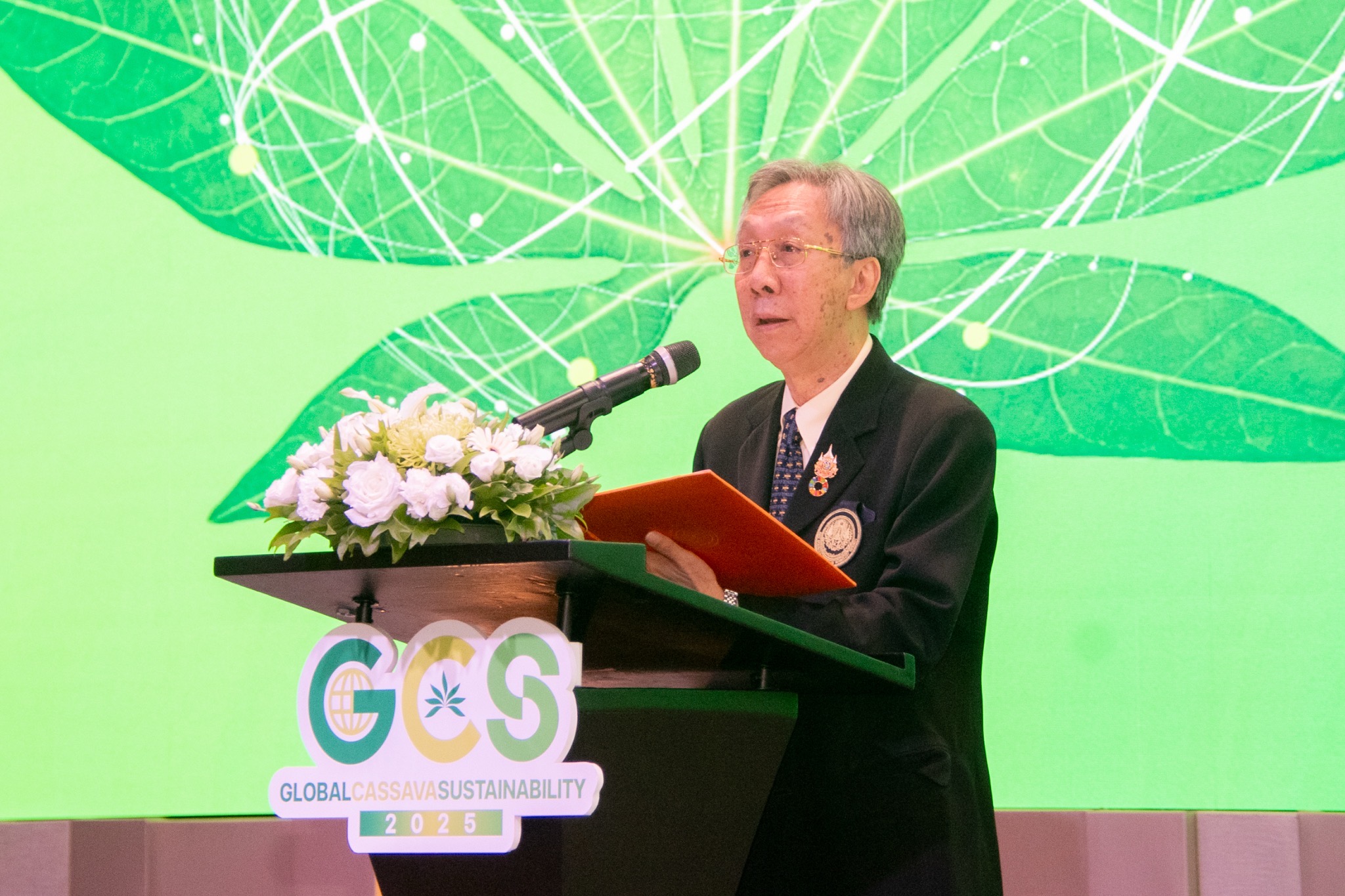 รองศาสตราจารย์ ดร.สุวิทย์ แซ่เตีย อธิการบดี มจธ. กล่าวถึงบทบาทของมหาวิทยาลัยภายใต้โครงการ Reinventing University ว่า มจธ. มุ่งพัฒนาองค์ความรู้และนวัตกรรมที่สามารถนำไปใช้จริง โดยใช้มันสำปะหลังเป็นฐานในการพัฒนาเศรษฐกิจชีวภาพ ทั้งในด้านเทคโนโลยีชีวภาพ พลังงานทดแทน และการจัดการของเสีย ซึ่ง มจธ. และไบโอเทค สวทช. มีความร่วมมือในโครงการต่าง ๆ ที่ได้ดำเนินการมาอย่างต่อเนื่อง เช่น โรงงานต้นแบบผลิตเอทานอล การสร้างองค์ความรู้และปรับปรุงกระบวนการผลิต และการประยุกต์ใช้แนวคิดเศรษฐกิจหมุนเวียนกับภาคอุตสาหกรรมมันสำปะหลัง พร้อมระบุว่า “การจัดงาน Global Cassava Sustainability Forum 2025 ครั้งนี้ถือเป็นเวทีสำคัญสำหรับการสร้างความร่วมมือเชิงกลยุทธ์ผ่านศูนย์มันสำปะหลังเพื่อความยั่งยืนอาเซียน (ASEAN Cassava Centre) ซึ่งมีบทบาทในการประสานความร่วมมือระหว่างผู้มีส่วนได้ส่วนเสียในทุกภาคส่วน ตั้งแต่ต้นน้ำถึงปลายน้ำของห่วงโซ่อุตสาหกรรมมันสำปะหลัง โดยมุ่งเน้นการเพิ่มขีดความสามารถในการแข่งขันในระดับนานาชาติ และการวางรากฐานของอุตสาหกรรมที่ยั่งยืนอย่างเป็นรูปธรรม นอกจากนี้ งานดังกล่าวยังสะท้อนเจตนารมณ์ของ มจธ. ในการขยายความร่วมมือระดับนานาชาติ และร่วมกันสร้างองค์ความรู้เพื่อยกระดับห่วงโซ่คุณค่ามันสำปะหลังอย่างยั่งยืน โดยเรามีเครือข่ายพันธมิตรที่เข้มแข็งจากทุกทวีปทั่วโลกที่มาร่วมงานครั้งนี้ รวมถึงหน่วยงานและสมาคมที่เกี่ยวข้องกับอุตสาหกรรมมันสำปะหลังตลอดห่วงโซ่มูลค่า และภาคเอกชนที่ร่วมสนับสนุนการจัดงาน ได้แก่ บริษัท อินกริดิออน (ประเทศไทย) จำกัด บริษัท พูนผล จำกัด และบริษัท สงวนวงษ์อุตสาหกรรม จำกัด”