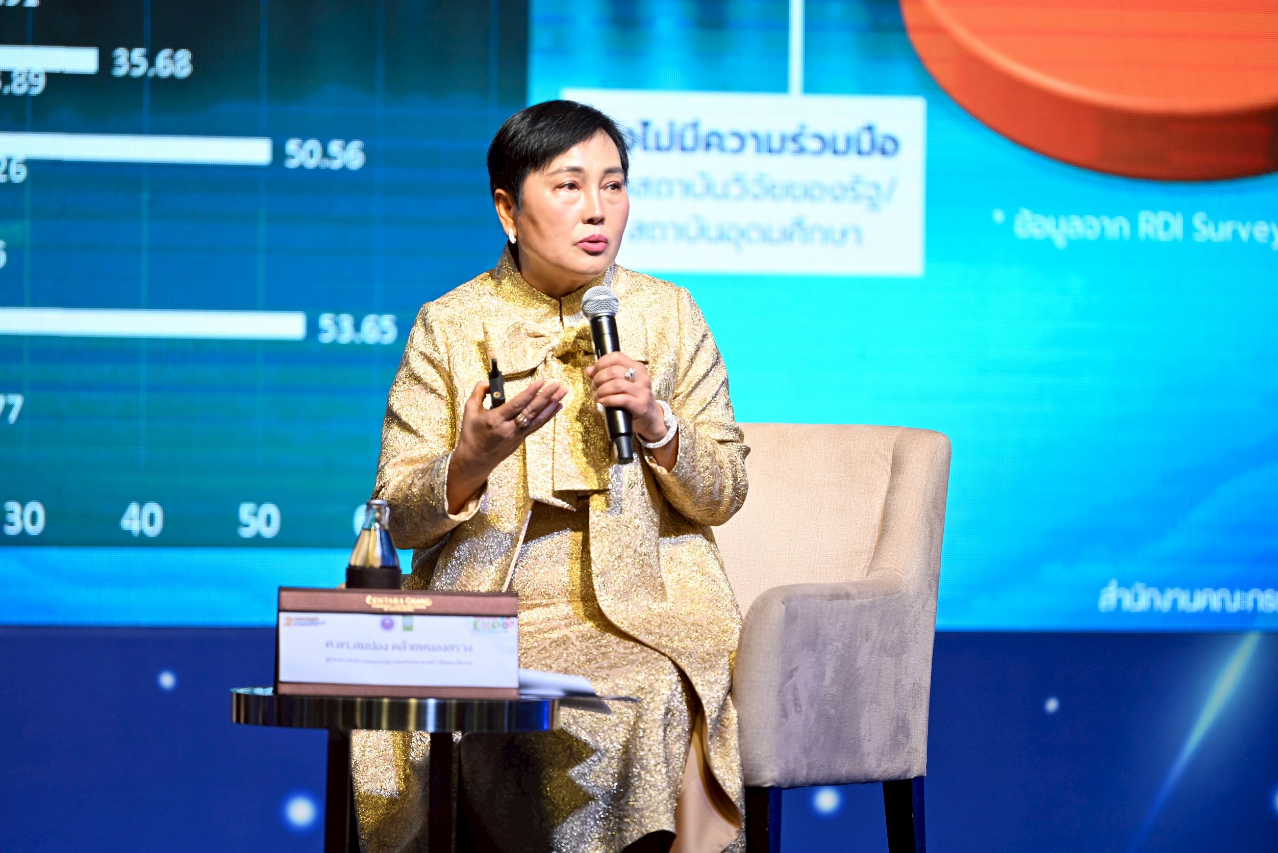 ดร.วิภารัตน์ ดีอ่อง ผู้อำนวยการสำนักงานการวิจัยแห่งชาติ กล่าวว่า วช. ดำเนินการจัดเก็บ วิเคราะห์ และสังเคราะห์ข้อมูลด้านการวิจัยและพัฒนาของประเทศอย่างต่อเนื่อง โดยเน้นการวัดค่าใช้จ่ายและบุคลากรด้านวิจัยและพัฒนา (R&D) ซึ่งเป็นตัวชี้วัดสำคัญที่ใช้ประเมินสถานภาพ ววน. ทั้งในระดับประเทศและระหว่างประเทศ ข้อมูลเหล่านี้มีความจำเป็นอย่างยิ่งต่อการวางแผนยุทธศาสตร์และการตัดสินใจเชิงนโยบายของรัฐบาล รวมถึงใช้ในการประเมินขีดความสามารถของประเทศในเวทีโลก เช่น IMD WIPO และ WEF การพัฒนาไปสู่ระบบ e-Index เพิ่มความแม่นยำ และสามารถคาดการณ์แนวโน้มการลงทุนใน ววน. ได้ล่วงหน้า ซึ่งจะเป็นประโยชน์อย่างยิ่งต่อทั้งภาครัฐ เอกชน และสถาบันอุดมศึกษาในการกำหนดทิศทางการพัฒนาประเทศในระยะยาว