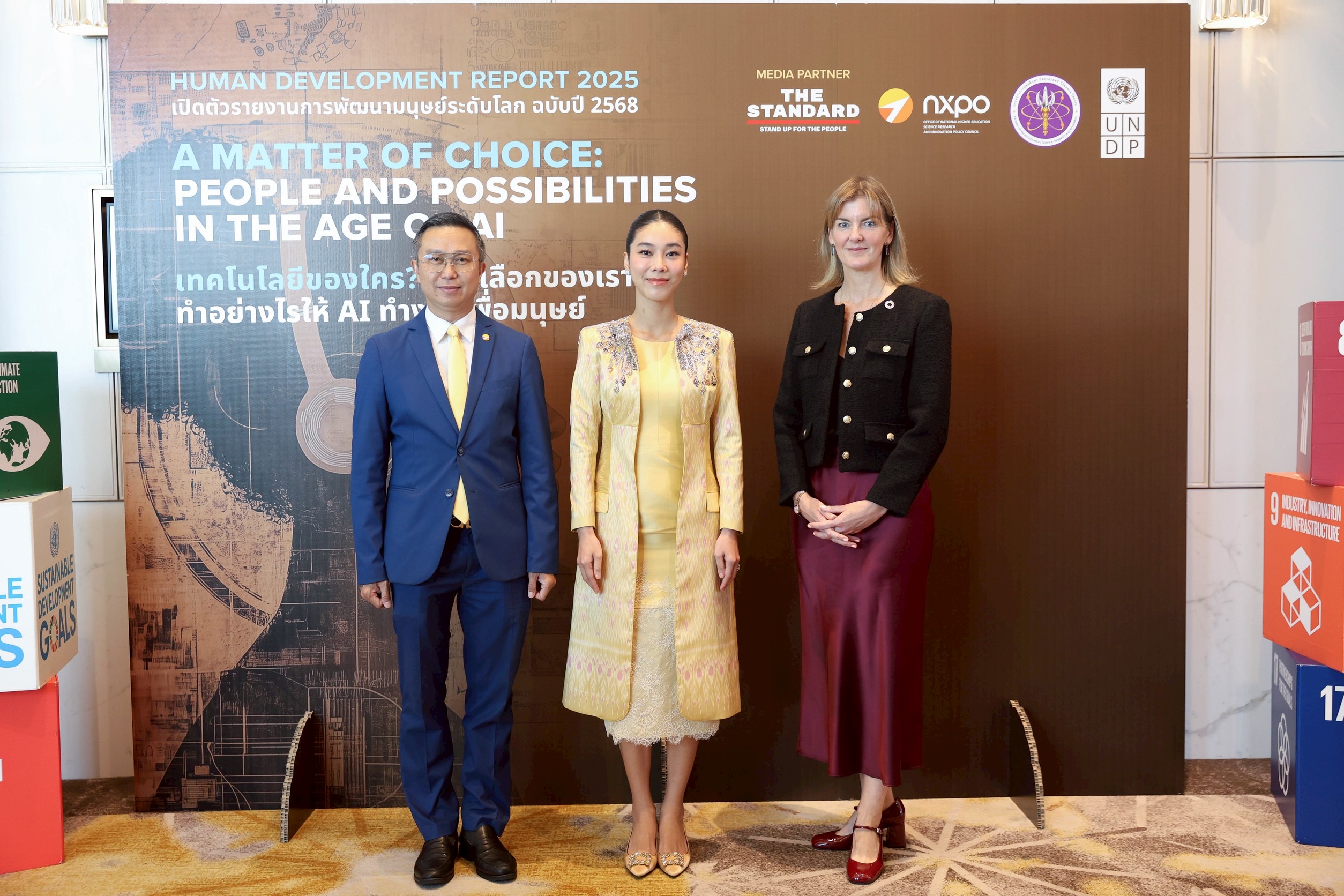 สำนักงานสภานโยบาย การอุดมศึกษา วิทยาศาสตร์ วิจัย และนวัตกรรมแห่งชาติ (สอวช.) ร่วมกับ โครงการพัฒนาแห่งสหประชาชาติ (UNDP) เปิดตัวรายงานการพัฒนามนุษย์ ประจำปี 2025 ในหัวข้อ “เทคโนโลยีของใคร? ทางเลือกของเรา : ทำอย่างไรให้ AI ทำงานเพื่อมนุษย์” ณ ห้องพญาไท 3 โรงแรมอีสติน แกรนด์ พญาไท โดยนางสาวศุภมาส อิศรภักดี รัฐมนตรีว่าการกระทรวงการอุดมศึกษา วิทยาศาสตร์ วิจัยและนวัตกรรม (อว.) ได้มอบหมายให้นางสาวสุชาดา ซาง แทนทรัพย์ เลขานุการรัฐมนตรีว่าการกระทรวง อว. กล่าวเปิดงาน พร้อมกล่าวปาฐกถาพิเศษ
