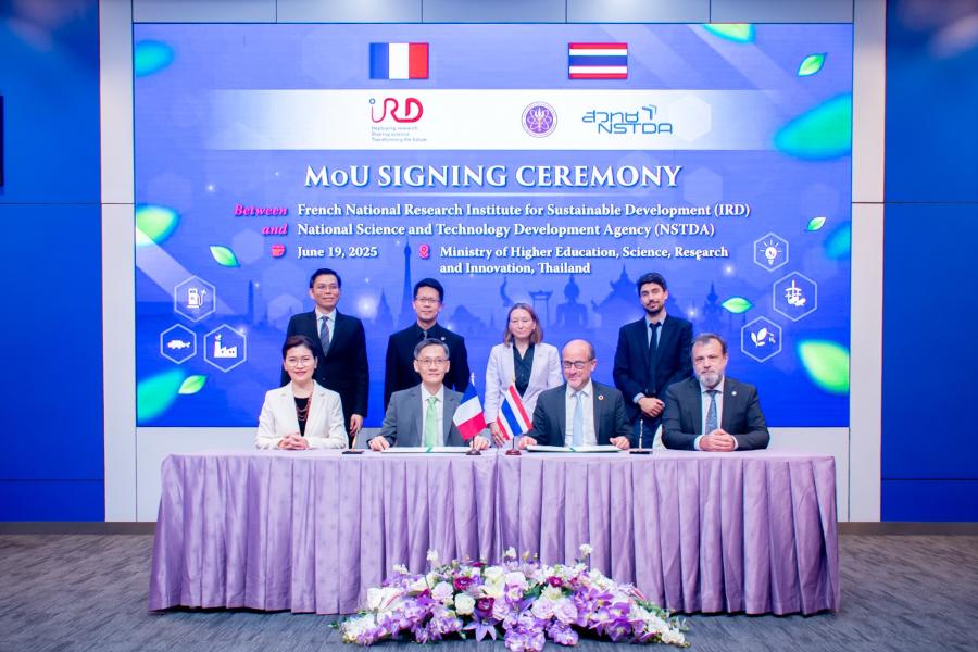 (19 มิถุนายน 2568) ณ ห้อง แถลงข่าวชั้น 1 อาคารพระจอมเกล้า:กระทรวงการอุดมศึกษา วิทยาศาสตร์ วิจัยและนวัตกรรม (อว.) สำนักงานพัฒนาวิทยาศาสตร์และเทคโนโลยีแห่งชาติ (สวทช.) โดยศูนย์พันธุวิศวกรรมและเทคโนโลยีชีวภาพแห่งชาติ (ไบโอเทค) และสถาบันวิจัยเพื่อการพัฒนาแห่งสาธารณรัฐฝรั่งเศส (IRD) ลงนามในบันทึกข้อตกลงความร่วมมือ (MoU) ฉบับใหม่ ครอบคลุมระยะเวลา 5 ปี เพื่อเดินหน้าสานต่อความร่วมมือในการวิจัยและพัฒนาด้านวิทยาศาสตร์และการศึกษาเพื่อรับมือกับความท้าทายด้านสิ่งแวดล้อมและความยั่งยืนที่โลกกำลังเผชิญอยู่ในปัจจุบัน โดยพิธีลงนามได้รับเกียรติจากผู้แทนระดับสูงของทั้ง สวทช. IRD และสถานเอกอัครราชทูตฝรั่งเศสประจำประเทศไทย ซึ่งสะท้อนถึงความร่วมมืออันแน่นแฟ้นด้านวิทยาศาสตร์ระหว่างสองประเทศ เพื่อร่วมกันขับเคลื่อนงานวิจัยและนวัตกรรมที่ตอบสนองต่อความท้าทายระดับโลกในยุคปัจจุบัน