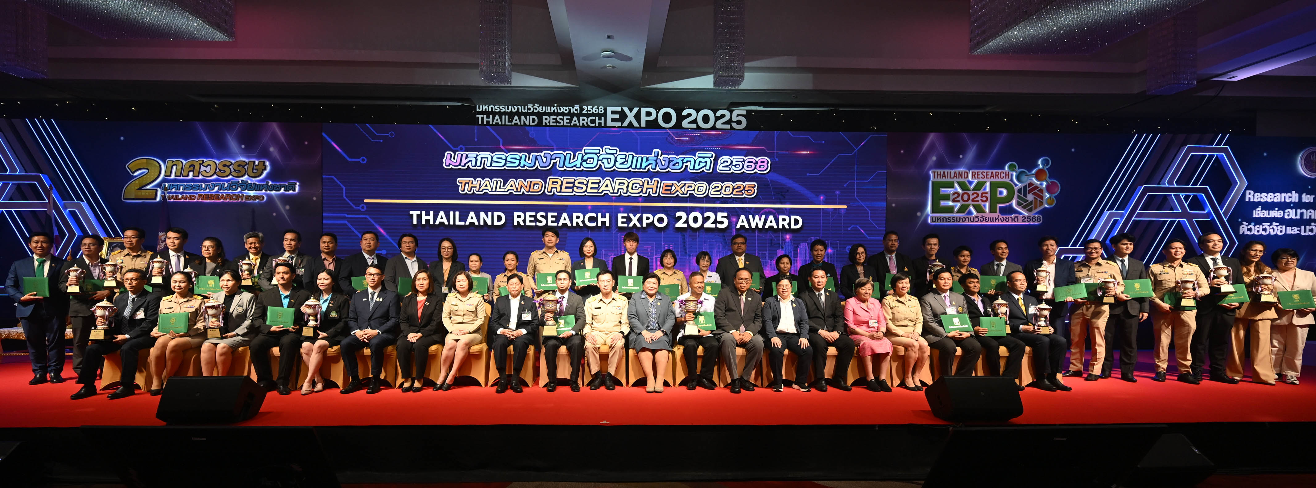 รางวัล Thailand Research Expo 2025 Award ในงานมหกรรมวิจัยแห่งชาติ ประจำปี 2568 มีการมอบรางวัลให้กับผลงานวิจัยและนวัตกรรมที่โดดเด่น ดังนี้