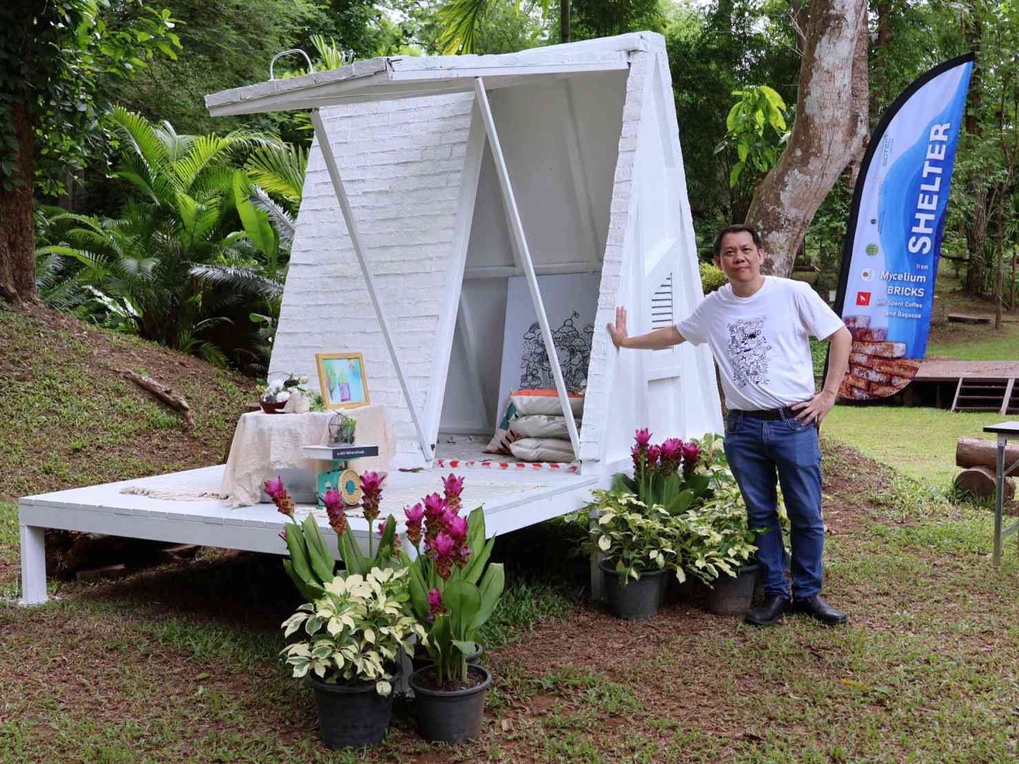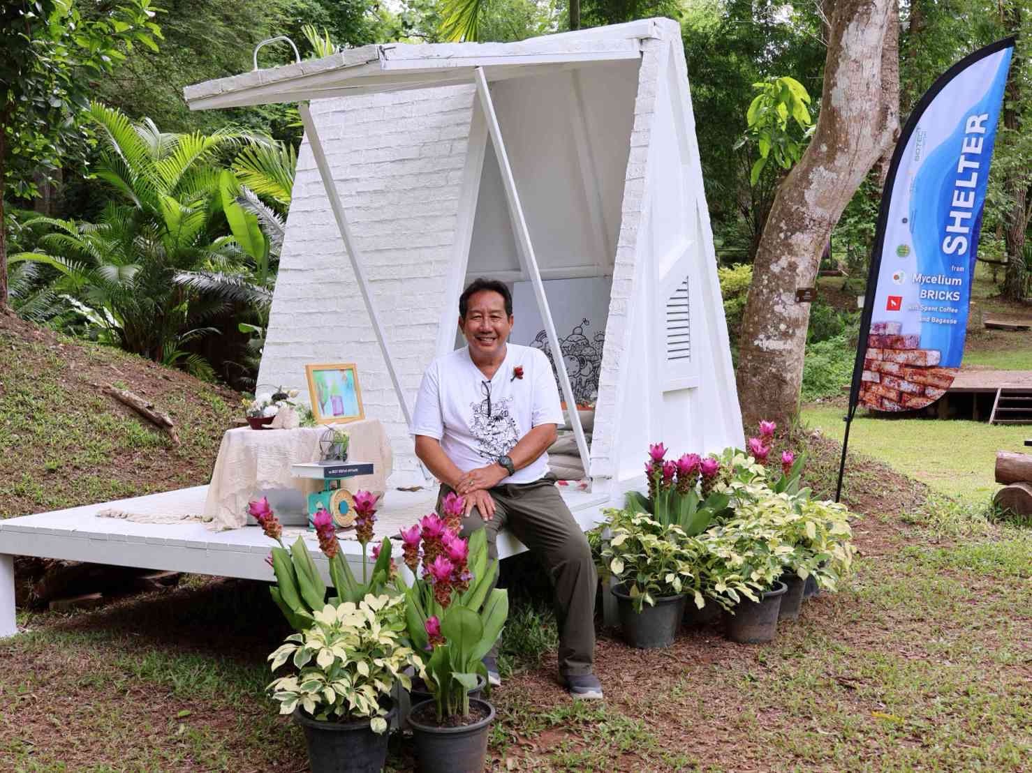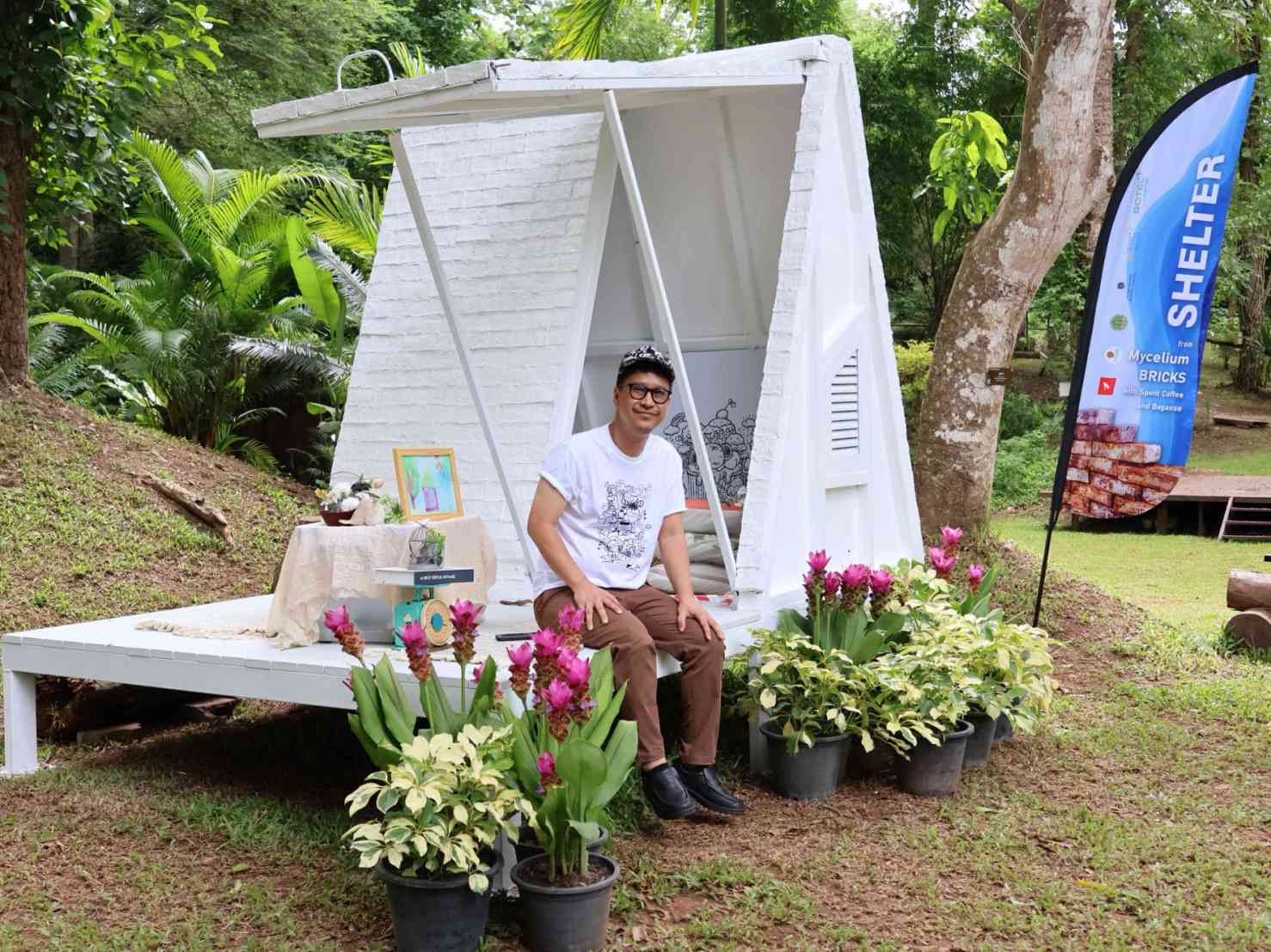 นายอิทธิพล พรหมฝาย นักออกแบบจากบริษัทเมิร์จ จำกัด และผู้ประสานงานเครือข่ายเพื่อนสวนพฤกษ์ อำเภอแม่สอด จังหวัดตาก กล่าวเสริมว่า การออกแบบ Bio-Brick Shelter ได้คำนึงถึงความยั่งยืน และนำจุดเด่นของวัสดุไมซีเลียม (mycelium) ที่สามารถย่อยสลายได้ มาผนวกกับการสร้างพื้นที่สีเขียวร่วมกับ Tech Seed Ball (เมล็ดพืชห่อหุ้มด้วยวัสดุชีวภาพ) และกิจกรรมสร้างสรรค์เชิงวัฒนธรรม เพื่อสนับสนุนการท่องเที่ยวธรรมชาติที่เป็นมิตรต่อสิ่งแวดล้อมในจังหวัดตาก ซึ่งมีต้นทุนทางธรรมชาติที่แข็งแกร่งอยู่แล้ว