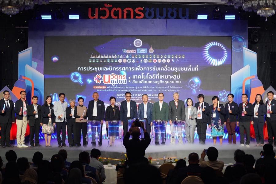 วันที่ 1-2 กรกฎาคม ณ โรงแรมเซ็นทารา แกรนด์ แอท เซ็นทรัลลาดพร้าว กรุงเทพมหานคร หน่วยบริหารและจัดการทุนด้านการพัฒนาระดับพื้นที่ (บพท.) ร่วมกับโครงการสังเคราะห์และขับเคลื่อนแพลตฟอร์มสร้างรายได้ครัวเรือนด้วยเทคโนโลยีที่เหมาะสมกับชุมชนสู่การใช้ประโยชน์และยกระดับเศรษฐกิจฐานราก มหาวิทยาลัยเทคโนโลยีราชมงคลธัญบุรี ภายใต้การสนับสนุนจากกองทุนส่งเสริม ววน. ร่วมกันจัดการประชุมและนิทรรศการเพื่อการขับเคลื่อนชุมชนพื้นที่ ”นวัตกรชุมชน: เทคโนโลยีที่เหมาะสมขับเคลื่อนเศรษฐกิจชุมชนไทย” ภายใต้แนวคิด “พลังสร้างสรรค์ จากนวัตกรชุมชน สู่อนาคตที่ยั่งยืน ด้วยนวัตกรรมและเทคโนโลยีที่เหมาะสม”
