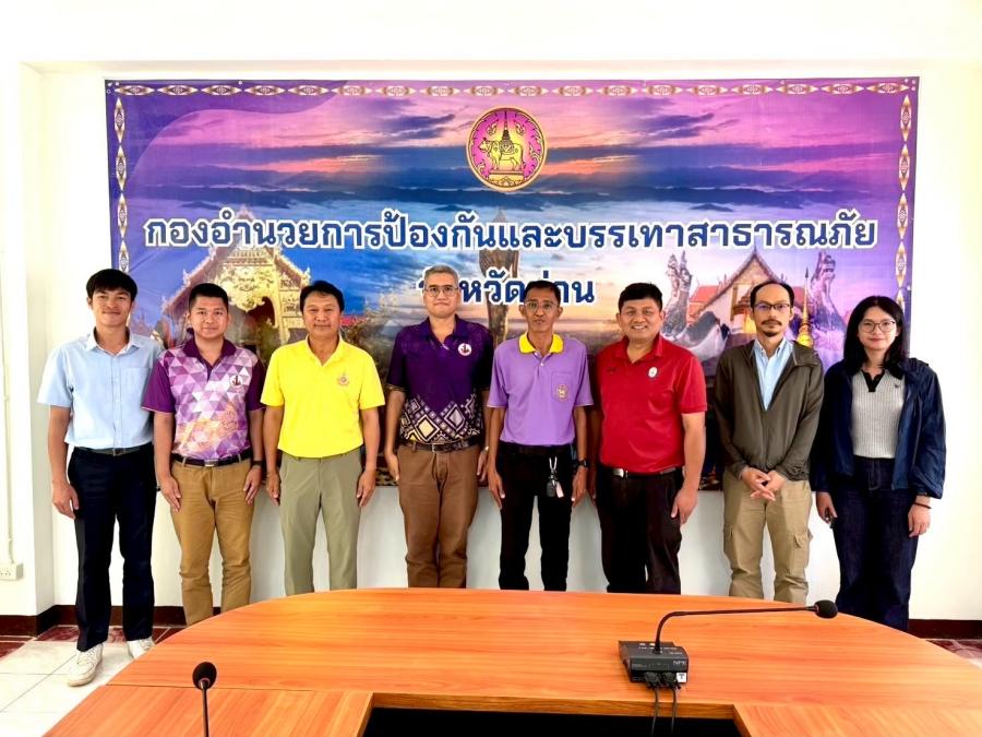 ปัจจุบันทีมวิจัยกำลังประสานชลประทานจังหวัดน่านในการรวบรวมข้อมูล เพื่อจัดทำแบบจำลองการพยากรณ์น้ำฝนและน้ำท่วม โดย ผศ. ดร. นสพ.วินัย ได้รายงานผู้ว่าราชการจังหวัดน่าน ว่าสิ่งที่ดำเนินการได้ในขณะนี้ คือ การนำข้อมูลพยากรณ์ฝนกรมอุตุนิยมวิทยาและข้อมูลดาวเทียมมาพยากรณ์ฝนคาดการณ์ล่วงหน้า 3 วัน โดยจะแปลความจากการทำโมเดลซึ่งเป็นข้อมูลเชิงเทคนิคมาเป็นภาษาที่เข้าใจง่าย เพื่อสื่อสารให้คนทั่วไปรับทราบ รวมถึงรวบรวมข้อมูลเพื่อทำแบบจำลองการพยากรณ์น้ำท่วม แต่ยังขาดข้อมูลสำคัญ คือ แบบจำลองระดับสูงเชิงเลข (Digital Elevation Model: DEM) โดยจะประสานขอข้อมูลจากสถาบันสารสนเทศทรัพยากรน้ำ (องค์การมหาชน) หรือ สสน. ซึ่งขณะนี้ สสน. ได้พัฒนาระบบแผนที่ความเสี่ยงคาดการณ์จากฝนสะสม 3 วัน และพื้นที่เฝ้าระวังพิเศษเสี่ยงน้ำท่วมจากฝนสะสม รายตำบล ล่วงหน้า 48 ชั่วโมง และเผยแพร่ผ่านทางเว็บไซต์ Thaiwater.net และแอปพลิเคชันมือถือ Thaiwater โดยพื้นที่เฝ้าระวังพิเศษในจังหวัดน่านมี 6 จุด ใน 4 อำเภอ คือ อำเภอเฉลิมพระเกียรติ อำเภอเชียงกลาง อำเภอบ่อเกลือ และอำเภอปัว