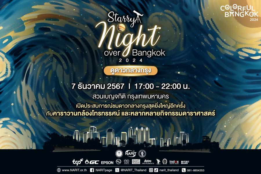 สถาบันวิจัยดาราศาสตร์แห่งชาติ (องค์การมหาชน) (สดร. หรือ NARIT) กระทรวงการอุดมศึกษา วิทยาศาสตร์ วิจัยและนวัตกรรม (อว.) เตรียมเนรมิตกรุงเทพ ฯ เป็นมหานครแห่งดวงดาวอีกครั้งจัด “ดูดาวกลางกรุง” Starry Night over Bangkok 2024 ในคืน “ดาวพฤหัสบดีใกล้โลกที่สุดในรอบปี” สัมผัสความงดงามของดาวบนฟ้าผ่านคาราวานกล้องโทรทรรศน์กว่าร้อยตัว และหลากหลายกิจกรรมดาราศาสตร์ ณ อัฒจันทร์กลาง สวนเบญจกิติ กรุงเทพฯ คืนวันเสาร์ที่ 7 ธันวาคม 2567 เวลา 17:00 - 22:00 น. ร่วมกิจกรรมฟรี ไม่มีค่าใช้จ่าย
