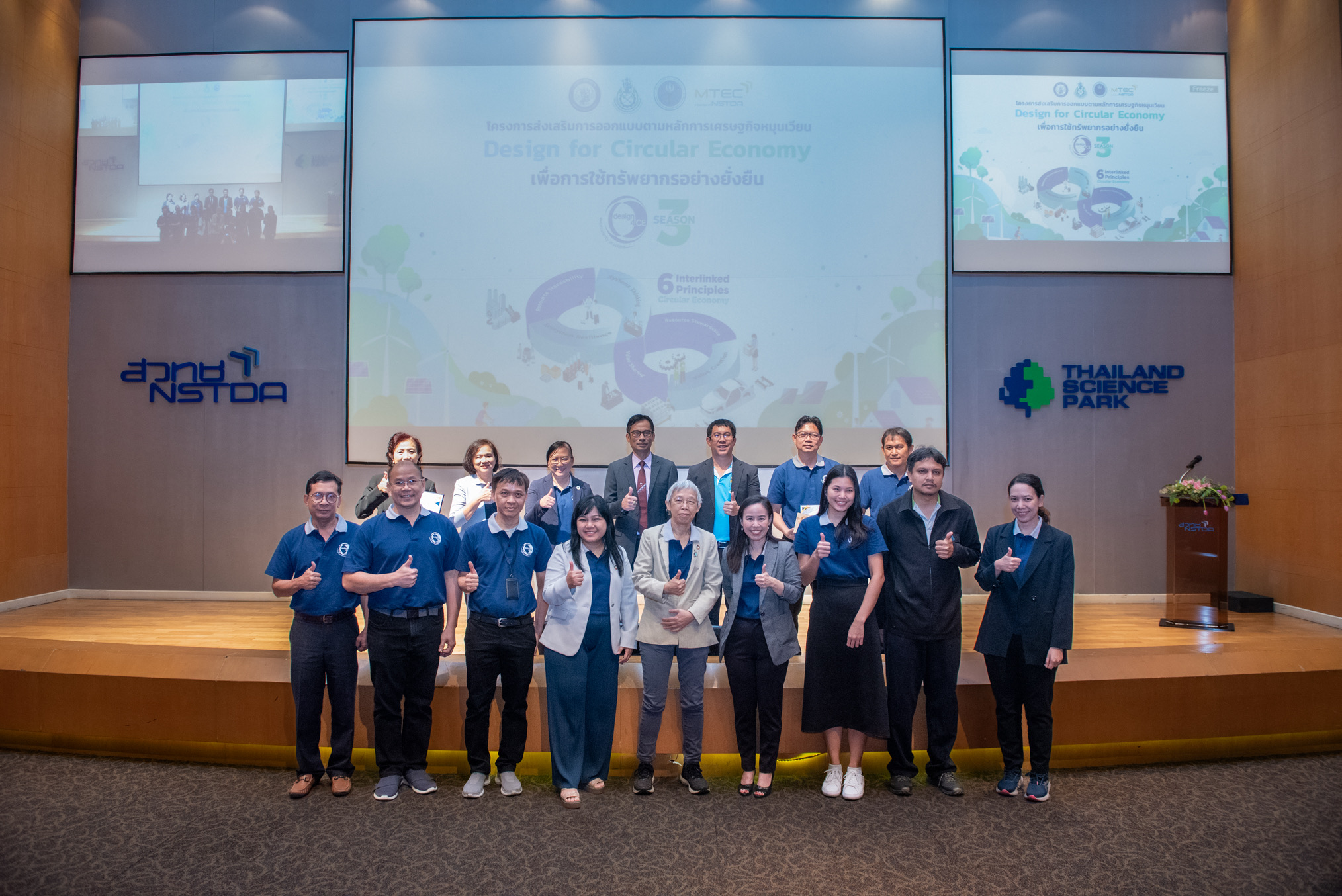 “เอ็มเทค สวทช. เป็นหน่วยงานหลักด้านการวิจัยและพัฒนาที่พร้อมสนับสนุนทุกภาคส่วนในการขับเคลื่อนเศรษฐกิจและสังคมของประเทศด้วยวิทยาศาสตร์ เทคโนโลยี และนวัตกรรมด้านเทคโนโลยีวัสดุและการผลิต ด้วยพันธกิจและความเชี่ยวชาญของทีมวิจัยในการพัฒนาและสร้างขีดความสามารถทางด้านเทคโนโลยีวัสดุให้แก่ภาครัฐและภาคเอกชน ต้องขอขอบคุณ กรมอุตสาหกรรมพื้นฐานและการเหมืองแร่ กระทรวงอุตสาหกรรมที่ได้ให้ความไว้วางใจเอ็มเทค เป็นที่ปรึกษาในการดำเนินงาน“โครงการส่งเสริมการออกแบบตามหลักการเศรษฐกิจหมุนเวียน (Design for Circular Economy) เพื่อการใช้ทรัพยากรอย่างยั่งยืน” ต่อเนื่องเป็นปีที่ 3 และขอขอบคุณบริษัทผู้ประกอบการที่เข้าร่วมกิจกรรมของโครงการ รวมทั้งผู้ที่ได้ร่วมกันผลักดันโครงการนี้ให้เกิดผลสำเร็จในการส่งเสริมและพัฒนาผู้ประกอบการให้มีการประยุกต์หลักคิดเศรษฐกิจหมุนเวียนในการออกแบบ และมีตัวอย่างผลสำเร็จที่เกิดขึ้นอย่างเป็นรูปธรรมก่อให้เกิดมูลค่าเพิ่มทางเศรษฐกิจและสังคมได้อย่างยั่งยืน” ดร.อศิรา กล่าว