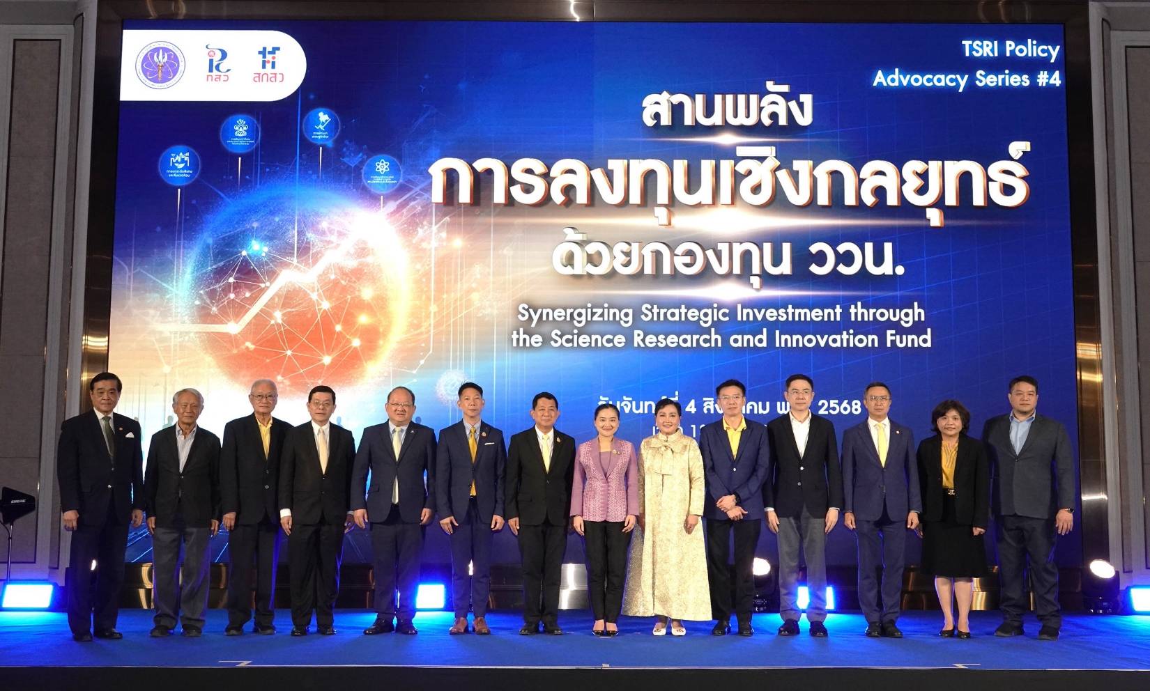 วันที่ 4 สิงหาคม 2568 – กระทรวงการอุดมศึกษา วิทยาศาสตร์ วิจัยและนวัตกรรม (อว.) ร่วมกับ สำนักงานคณะกรรมการส่งเสริมวิทยาศาสตร์ วิจัยและนวัตกรรม (สกสว.) จัดงาน TSRI Policy Advocacy Series #4 ภายใต้หัวข้อ “สานพลังการลงทุนเชิงกลยุทธ์ ด้วยกองทุน ววน.” เพื่อระดมความคิดเห็น ออกแบบกลไกการลงทุนด้านวิทยาศาสตร์ วิจัย และนวัตกรรม (ววน.) ที่เป็นรูปธรรม ตอบโจทย์การพัฒนาประเทศในยุคเศรษฐกิจฐานความรู้