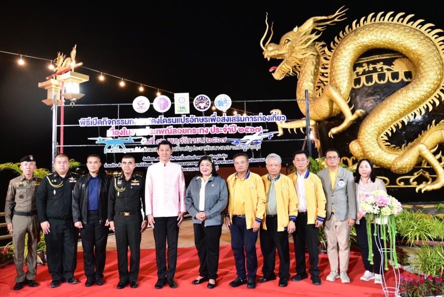 นายศักดิ์ชัย พิศาลผล นายกเทศมนตรีเมืองราชบุรี กล่าวว่า ตามที่ท่าน นภินทร ศรีสรรพางค์ รัฐมนตรีช่วยว่าการกระทรวงพาณิชย์ได้ประสานในเรื่องการนำโดรนมาแสดงในงานประเพณีลอยกระทง ประจำปี 2567 เพื่อส่งเสริมการท่องเที่ยวของจังหวัดราชบุรีและมอบความสุขให้กับพี่น้องประชาชนในคืนวันลอยกระทง ได้ชมการแสดงโดรนแปรอักษรที่ยิ่งใหญ่กลางลำน้ำแม่กลอง และได้มีการแสดงโชว์ประเพณีลอยกระทง ตั้งแต่คืนวันที่ 12-15 พฤศจิกายน 2567 ณ บริเวณลานโอ่งมังกรพ่นน้ำริมเขื่อนรัฐประชาพัฒนาเทศบาลเมืองราชบุรี อำเภอเมืองราชบุรี จังหวัดราชบุรี ที่จะช่วยเพิ่มคุณค่าและสนับสนุนการท่องเที่ยวจังหวัดราชบุรี