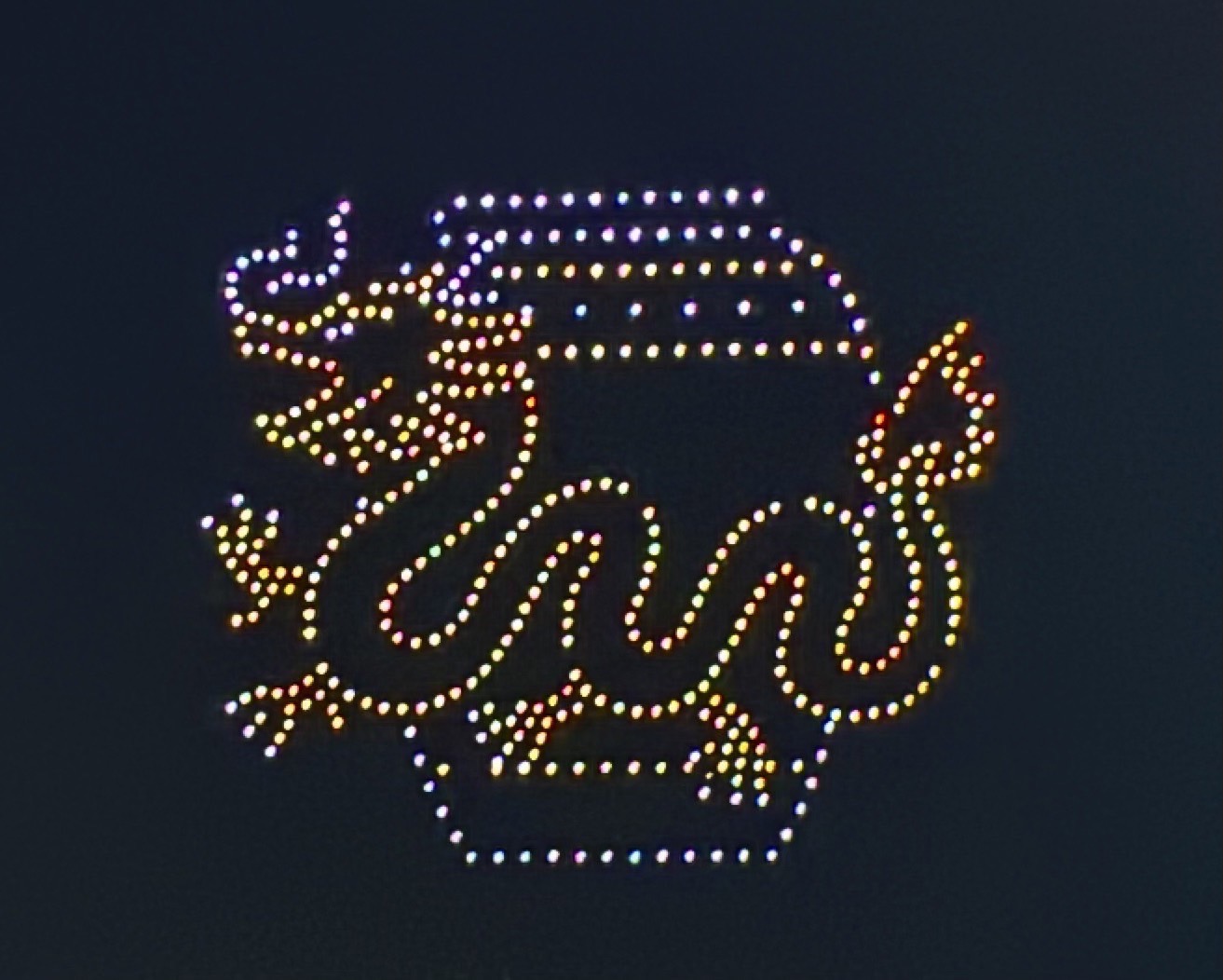 และมีโดรนขึ้นบินมากกว่า 500 ลำ โดยได้แสดงถึงสัญลักษณ์ของพื้นที่และแหล่งท่องเที่ยวของจังหวัดราชบุรี อาทิ ภาพประตูเมืองจังหวัดราชบุรี ภาพโอ่งมังกรราชบุรี ภาพตลาดน้ำดำเนินสะดวก ภาพ Logo เทศบาลเมืองราชบุรี เป็นต้น ซึ่งการแสดงครั้งนี้เป็นการสร้างความตื่นตาตื่นใจให้กับผู้ร่วมชมเป็นอย่างมาก รวมถึงเป็นการส่งเสริมการท่องเที่ยวเชิงสร้างสรรค์ และเป็นการประชาสัมพันธ์ศักยภาพของจังหวัดราชบุรีไปสู่สายตานานาชาติ แสดงถึงความสำเร็จของนวัตกรรมโดรนแปรอักษรฝีมือคนไทย