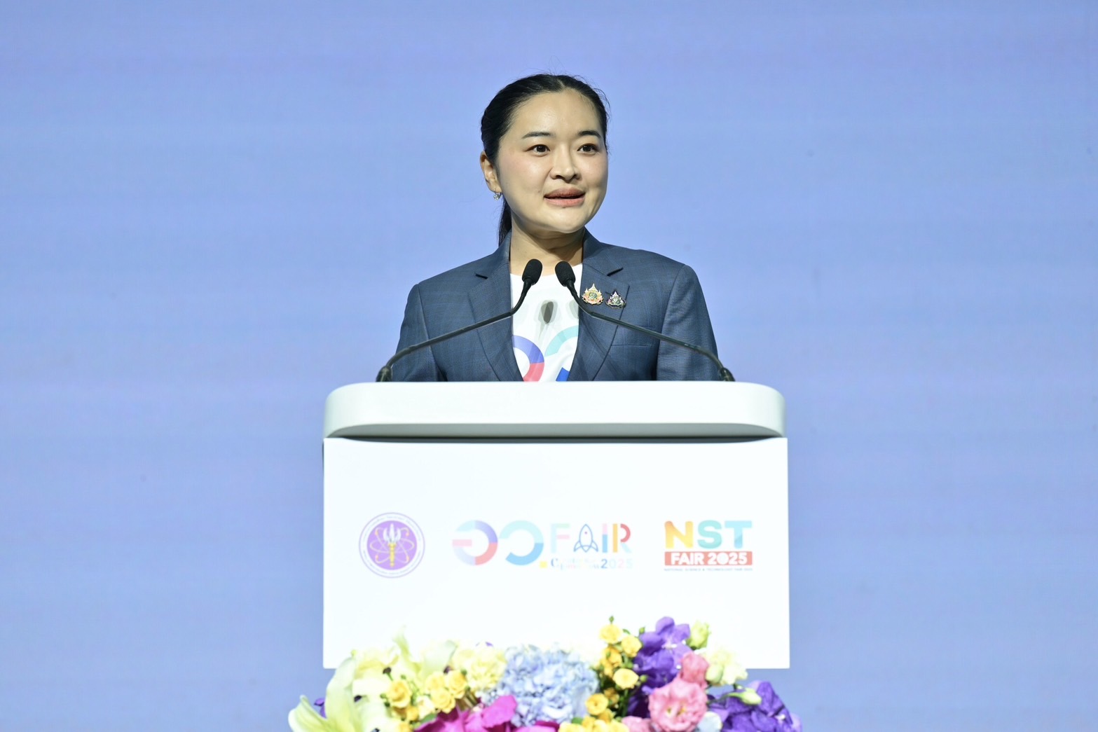 นางสาวสุดาวรรณ กล่าวว่า กระทรวงการอุดมศึกษา วิทยาศาสตร์ วิจัยและนวัตกรรม (อว.) มุ่งมั่นขับเคลื่อนนโยบาย “สร้างปัญญา เปิดโอกาส สร้างอนาคตไทย” ให้เป็นรูปธรรมผ่าน 2 ภารกิจหลัก คือ การพัฒนากำลังคนอย่างเท่าเทียม ลดความเหลื่อมล้ำทางการศึกษา ยกระดับวิทยาศาสตร์ วิจัย และนวัตกรรม เพื่อขับเคลื่อนประเทศด้วยองค์ความรู้ ซึ่งสอดคล้องกับแนวคิดการจัดงาน อว.แฟร์ 2025 : Creators of Tomorrow และงาน NST fair 2025 : Science in Action! For Sustainable Communities และแสดงให้เห็นถึงการนำนโยบายทั้ง 2 ด้าน มาสร้างเป็นเวทีที่มากกว่านิทรรศการและงานเสวนาวิชาการ แต่เป็นพื้นที่ที่จุดประกายให้คนไทยทุกช่วงวัยได้เห็นถึงความคิดสร้างสรรค์นำไปสู่การลงมือทำ พร้อมเปิดโอกาสให้เยาวชน นักวิจัย ผู้ประกอบการ และประชาชนทุกคนได้เริ่มสร้างอนาคตไทยด้วยพลังของทั้งศาสตร์และศิลป์ผสานเข้าด้วยกันจนเกิดเป็น ‘นวัตกรรม’ โดย อว. ได้ให้ความสำคัญในการเพิ่มศักยภาพของคนไทยผ่าน 3 นโยบายหลักประกอบด้วย ประการแรก: สร้างปัญญา ด้วยการเปิดพื้นที่แห่งการเรียนรู้ที่เข้มข้นผ่านนิทรรศการ เทคโนโลยี และกิจกรรมที่บูรณาการทั้งศาสตร์และศิลป์ เพื่อปลูกฝังความรู้ ความคิด และทักษะให้แก่เยาวชนและประชาชนทุกช่วงวัย ประการที่สอง: เปิดโอกาส ด้วยการเชื่อมโยงงานวิจัย เทคโนโลยี และทุนการศึกษาเพื่อให้ทุกคน โดยเฉพาะกลุ่มเปราะบางและเยาวชนในพื้นที่ห่างไกลเข้าถึงการเรียนรู้และการพัฒนาอย่างเท่าเทียม ประการที่สาม: สร้างอนาคตไทย ด้วยการขับเคลื่อน Soft Power Deep Tech และอุตสาหกรรมอนาคตผ่านความร่วมมือระหว่างภาครัฐ มหาวิทยาลัย และผู้ประกอบการ เพื่อให้ประเทศไทยมีศักยภาพในการแข่งขันเวทีโลก นโยบายทั้งหมด คือ การสร้างระบบนิเวศแห่งการเรียนรู้ การวิจัยและการสร้างสรรค์ที่เชื่อมโยงระหว่างห้องเรียน ห้องแล็บ ชุมชน และธุรกิจเพื่อตอบโจทย์อุตสาหกรรมแห่งอนาคต เช่น AI EV Semiconductor Smart Farming เศรษฐกิจอวกาศ และ Soft Power ไทย