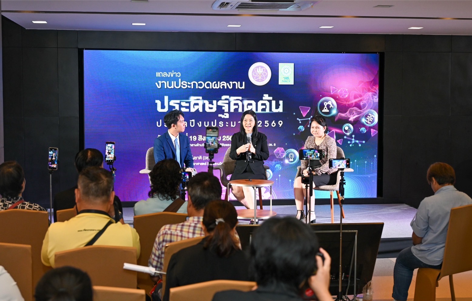 วันที่ 19 สิงหาคม 2568 สำนักงานการวิจัยแห่งชาติ (วช.) กระทรวงการอุดมศึกษา วิทยาศาสตร์ วิจัยและนวัตกรรม แถลงข่าว “งานประกวดผลงานประดิษฐ์คิดค้น ประจำปีงบประมาณ 2569” โดย ดร.วิภารัตน์ ดีอ่อง ผู้อำนวยการสำนักงานการวิจัยแห่งชาติ เป็นประธานกล่าวเปิดงาน พร้อมด้วยคณะผู้บริหาร วช. และนักวิจัยที่เข้าร่วม ณ ศูนย์ข้อมูลสารสนเทศกลางด้านวิทยาศาสตร์ วิจัยและนวัตกรรมของประเทศ วช.