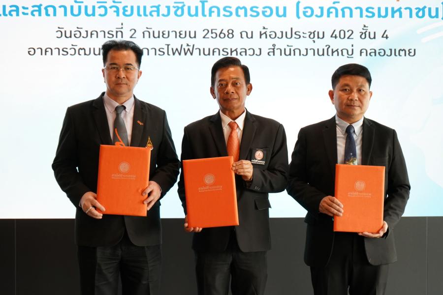 สถาบันวิจัยแสงซินโครตรอน โดย นายสำเริง ด้วงนิล รองผู้อำนวยการสนับสนุนเทคนิคและวิศวกรรม มหาวิทยาลัยเทคโนโลยีสุรนารี โดย รศ.ดร.อนันต์ ทองระอา อธิการบดีมหาวิทยาลัยเทคโนโลยีสุรนารี และการไฟฟ้านครหลวง โดย นายพิพัฒน์ ชลอำไพ รองผู้ว่าการบริการระบบจำหน่าย ร่วมลงนามในบันทึกข้อตกลงความร่วมมือการวิจัยและพัฒนานวัตกรรมด้านการบริหารจัดการพลังงานไฟฟ้าสู่เป้าหมายความเป็นกลางทางคาร์บอน (Carbon Neutrality) และการปลดปล่อยก๊าซเรือนกระจกสุทธิเป็นศูนย์ (Net Zero Emissions) โดยมี รศ.รังสรรค์ วงศ์สรรค์ ประธานอนุกรรมการ การจัดการเทคโนโลยีดิจิทัล และนวัตกรรม การไฟฟ้านครหลวง เป็นประธานในพิธี เมื่อวันที่ 2 กันยายน 2568 ณ อาคารวัฒนวิภาส การไฟฟ้านครหลวง กรุงเทพมหานคร