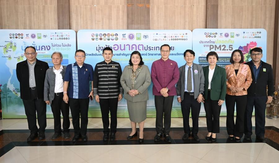 -“ประเทศไทยปลอดภัยจาก PM2.5” นำโดย ดร.วีระศักดิ์ โควสุรัตน์ ประธานคณะกรรมการส่งเสริมแผนงาน และ นางสาวเสาวนีย์ มุ่งสุจริตการ รองผู้อำนวยการสำนักงานการวิจัยแห่งชาติ