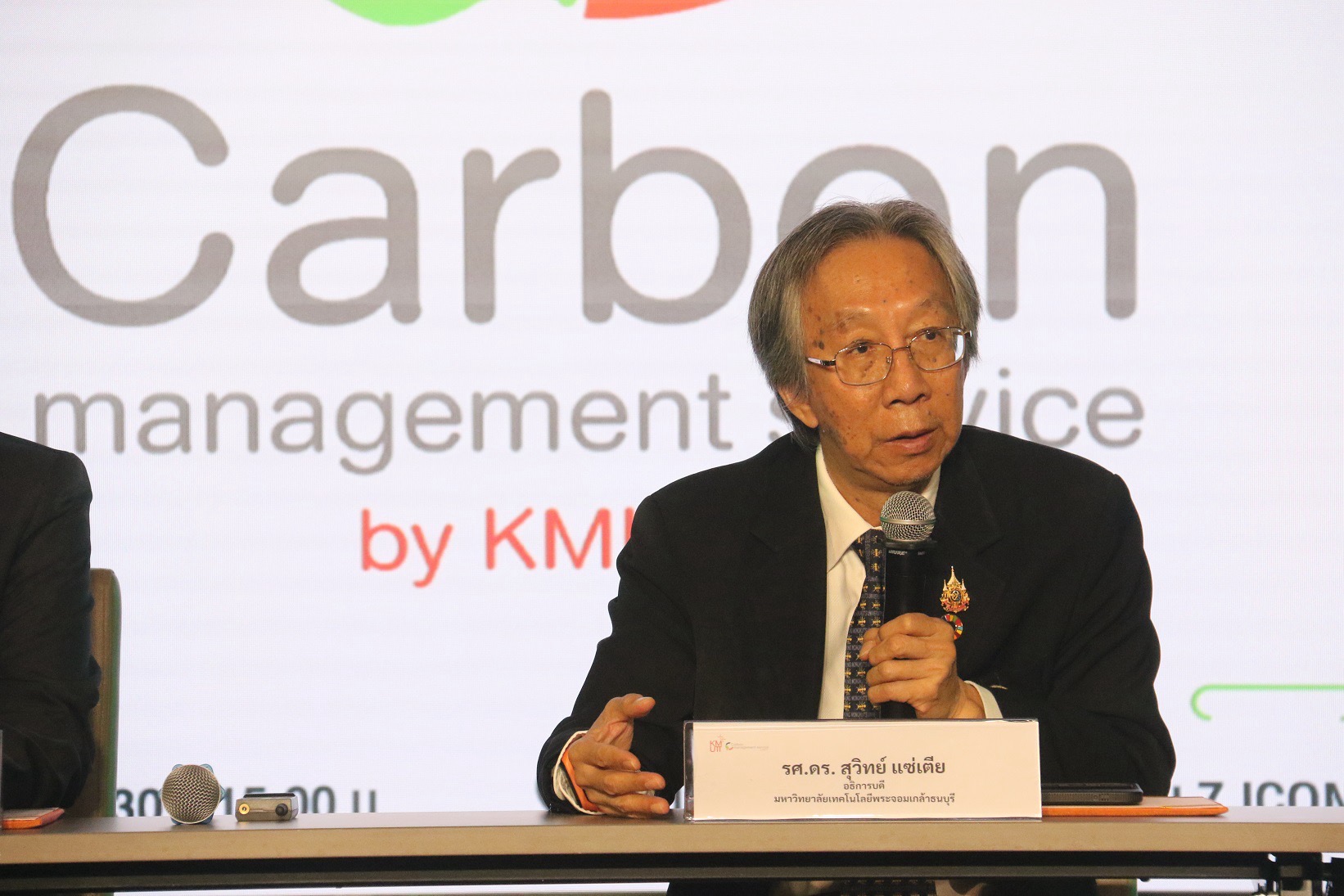 รศ.ดร.สุวิทย์ แซ่เตีย อธิการบดีมหาวิทยาลัยเทคโนโลยีพระจอมเกล้าธนบุรี (มจธ.) กล่าวว่า ในฐานะสถาบันอุดมศึกษาที่มุ่งมั่นสร้างสรรค์นวัตกรรมเพื่อสังคมอย่างยั่งยืน มจธ. ได้ก้าวขึ้นเป็นผู้นำในการขับเคลื่อนวาระสำคัญระดับชาติ ด้วยการเปิดตัว “Carbon Management Platform” ซึ่งเป็นผลงานจากโครงการภายใต้แผนงานบูรณาการเขตพัฒนาพิเศษภาคตะวันออก (EEC) ประจำปีงบประมาณ พ.ศ. 2567 โดยมีเป้าหมายหลักในการสนับสนุนภาคอุตสาหกรรมในพื้นที่ EEC ซึ่งเป็นศูนย์กลางเศรษฐกิจที่สำคัญของประเทศ ให้สามารถบรรลุเป้าหมายความเป็นกลางทางคาร์บอน (Carbon Neutrality) และการปล่อยก๊าซเรือนกระจกสุทธิเป็นศูนย์ (Net-Zero GHG Emission) ได้อย่างเป็นรูปธรรม