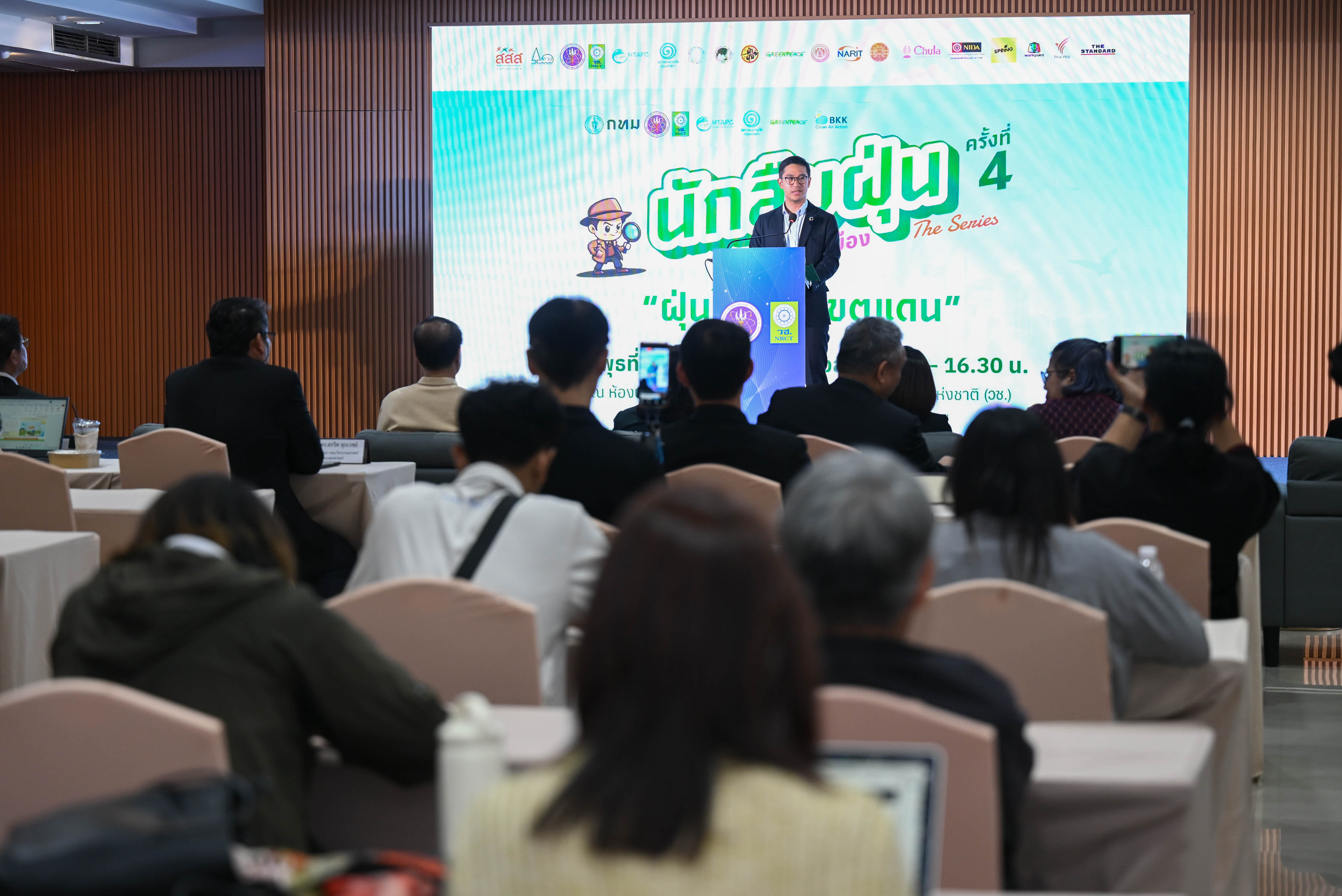 วันที่ 17 กันยายน 2568 สำนักงานการวิจัยแห่งชาติ (วช.) กระทรวงการอุดมศึกษา วิทยาศาสตร์ วิจัยและนวัตกรรม ร่วมกับ ศูนย์รวมผู้เชี่ยวชาญด้านมลพิษอากาศและภูมิอากาศ (HTAPC) กรุงเทพมหานคร (กทม.) สภาลมหายใจกรุงเทพมหานคร (Breathe Bangkok) และกรีนพีซ ประเทศไทย (Greenpeace Thailand) จัดเวทีเสวนา “นักสืบฝุ่น The Series” ครั้งที่ 4 ในหัวข้อ “ฝุ่นไม่รู้จักเขตแดน” โดย ดร.วิภารัตน์ ดีอ่อง ผู้อำนวยการสำนักงานการวิจัยแห่งชาติ เป็นประธานในพิธี พร้อมด้วย คุณพรพรหม วิกิตเศรษฐ์ ที่ปรึกษาผู้ว่าราชการกรุงเทพมหานครและผู้บริหารด้านความยั่งยืนของกรุงเทพมหานคร กล่าวต้อนรับ ณ ห้องประชุมจอมพลสฤษดิ์ ธนะรัชต์ อาคาร วช. 1