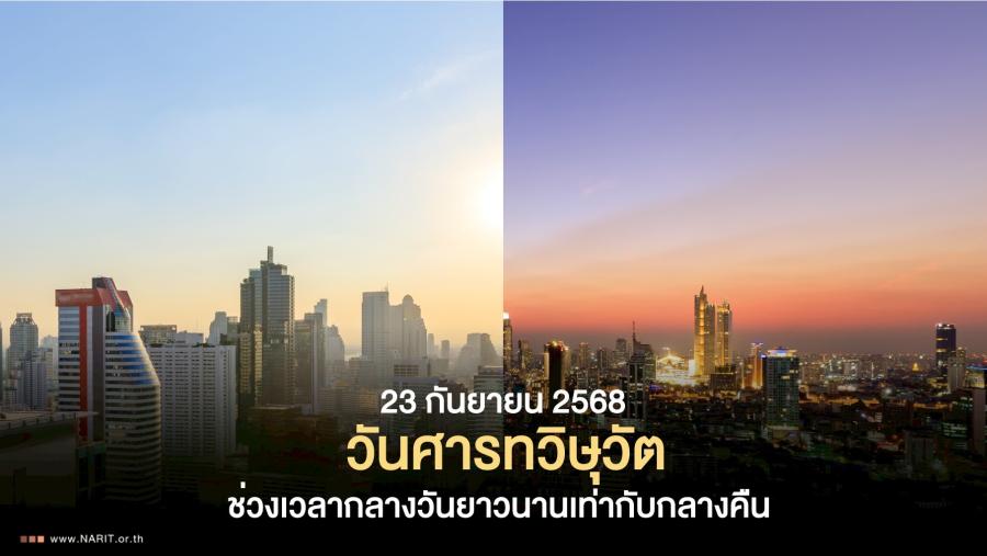 สถาบันวิจัยดาราศาสตร์แห่งชาติ (องค์การมหาชน) (สดร. หรือ NARIT) กระทรวงการอุดมศึกษา วิทยาศาสตร์ วิจัย และนวัตกรรม (อว.) เผย 23 กันยายน 2568 เป็นวัน ”วันศารทวิษุวัต” ช่วงเวลากลางวันและกลางคืนยาวนานเท่ากัน นับเป็นวันเริ่มต้นสู่ฤดูใบไม้ร่วงของประเทศทางซีกโลกเหนือ และเริ่มต้นสู่ฤดูใบไม้ผลิของประเทศในซีกโลกใต้