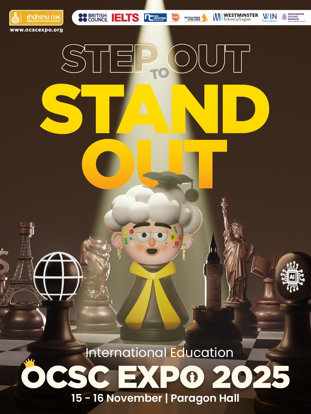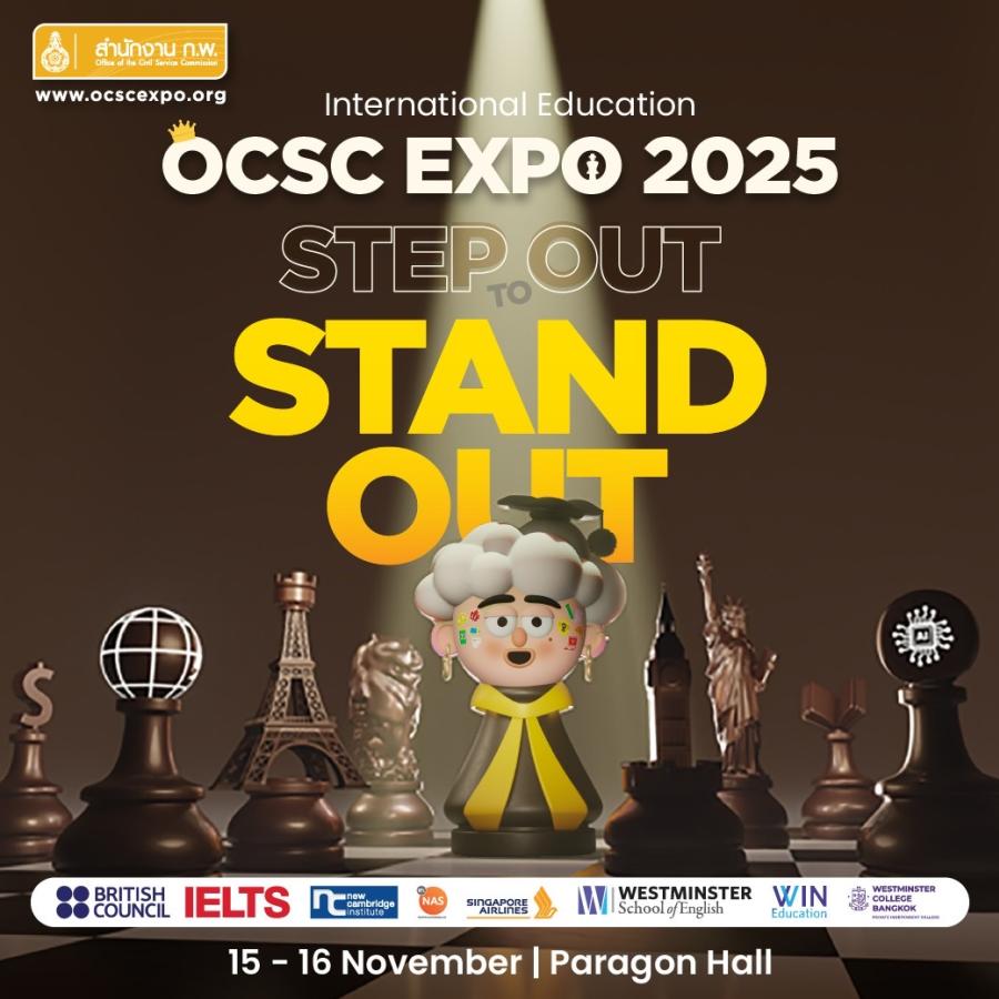 สำนักงานคณะกรรมการข้าราชการพลเรือน (OCSC) เตรียมจัดงาน OCSC International Education Expo 2025 มหกรรมการศึกษาต่อต่างประเทศที่ใหญ่ที่สุดในประเทศไทย โดยจัดต่อเนื่องเป็นปีที่ 20 เพื่อตอกย้ำความมุ่งมั่นในการเป็นศูนย์กลางการศึกษาต่อต่างประเทศสำหรับนักเรียน นักศึกษา และผู้สนใจทั่วประเทศ ภายใต้แนวคิด “Step Out to Stand Out” สะท้อนถึง ความมั่นใจ ความโดดเด่น และความกล้าที่จะก้าวสู่ความสำเร็จ ผู้ที่กล้าออกจากกรอบเดิม ค้นหาประสบการณ์ใหม่ มุ่งมั่นตั้งใจเพื่อสร้างความโดดเด่นและความแตกต่างสู่โอกาสแห่งความสำเร็จในอนาคต