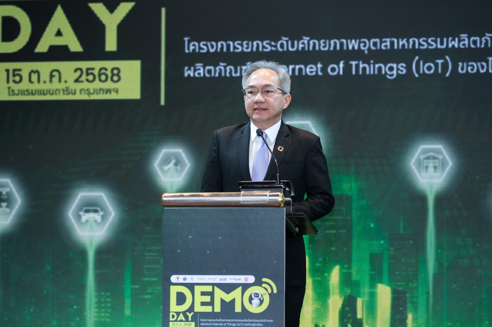 วันที่ 15 ตุลาคม 2568 ณ ห้องแกรนด์บอลรูม โรงแรมแมนดาริน กรุงเทพฯ สำนักงานพัฒนาวิทยาศาสตร์และเทคโนโลยีแห่งชาติ (สวทช.) ภายใต้ กระทรวงการอุดมศึกษา วิทยาศาสตร์ วิจัยและนวัตกรรม (อว.) ร่วมกับ สำนักงานคณะกรรมการกิจการกระจายเสียง กิจการโทรทัศน์ และกิจการโทรคมนาคมแห่งชาติ (กสทช.) จัดกิจกรรม Demo Day ในโครงการ “ยกระดับศักยภาพอุตสาหกรรมผลิตภัณฑ์หุ่นยนต์บริการและผลิตภัณฑ์ IoT ของไทยสู่อาเซียน” โดยมี ศาสตราจารย์ ดร.ชูกิจ ลิมปิจำนงค์ ผู้อำนวยการสำนักงานพัฒนาวิทยาศาสตร์และเทคโนโลยีแห่งชาติ (สวทช.) เป็นประธานเปิดงาน พร้อมด้วย ดร.ไกรสร อัญชลีวรพันธุ์ ผู้อำนวยการศูนย์ทดสอบผลิตภัณฑ์ไฟฟ้าและอิเล็กทรอนิกส์ (PTEC) สวทช. และ นายไตรรัตน์ วิริยะศิริกุล รองเลขาธิการ กสทช. รักษาการเลขาธิการ กสทช. เข้าร่วมงาน พร้อมมอบโล่รางวัลแก่ผู้ประกอบการในโครงการพัฒนานวัตกรรม (JumpStart) และโครงการรับรองคุณภาพ P-mark ตราสัญลักษณ์ที่มอบให้กับผลิตภัณฑ์ที่ผ่านการทดสอบและได้รับการรับรองว่าได้มาตรฐานคุณภาพและความปลอดภัยจากศูนย์ PTEC สวทช.