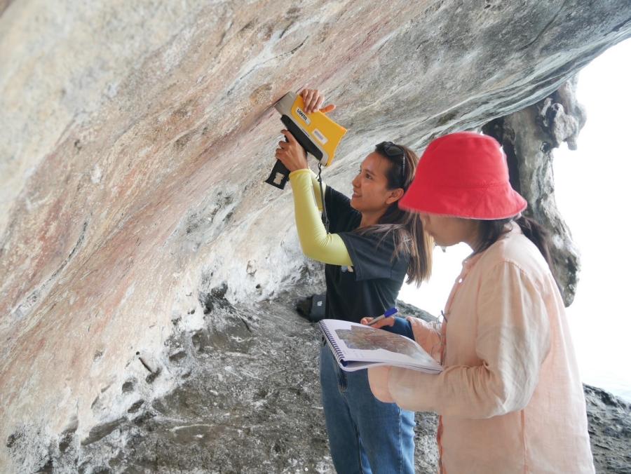 นักวิทย์ซินโครตรอนและนักวิจัย มก. ร่วมไขอดีต 3000 ปีของ จ.กระบี่ ผ่านการวิเคราะห์ธาตุองค์ประกอบในภาพเขียนสีโบราณบนผนังถ้ำ