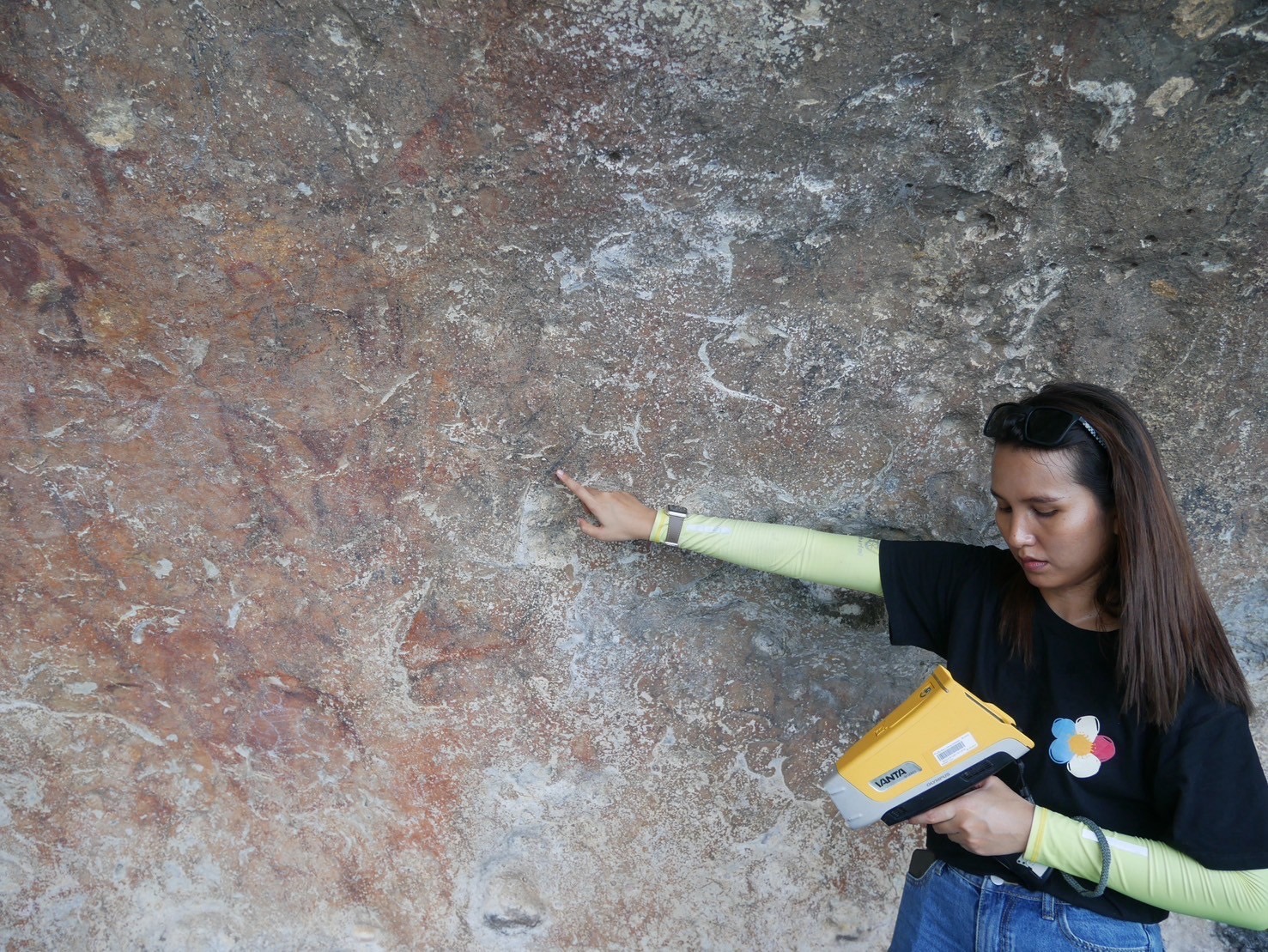 “คณะวิจัยจากทั้งสองหน่วยงานได้ลงพื้นที่ เพื่อหาข้อมูลเบื้องต้นเกี่ยวกับธาตุองค์ประกอบในสีที่มนุษย์โบราณใช้สร้างสรรค์ภาพวาด อันจะนำไปสู่การระบุแหล่งที่มาของวัตถุดิบที่นำมาใช้ในการผลิตสี รวมถึงสามารถใช้ข้อมูลดังกล่าวในการวิเคราะห์บริบททางวัฒนธรรมและสังคมของมนุษย์ยุคก่อนประวัติศาสตร์ได้อย่างมีประสิทธิภาพมากยิ่งขึ้น โดยในการศึกษาครั้งนี้ ทีมวิจัยได้นำเครื่องวิเคราะห์ธาตุแบบพกพาไปใช้ในการวิเคราะห์องค์ประกอบทางเคมีของสีที่ปรากฏบนผนังถ้ำ”