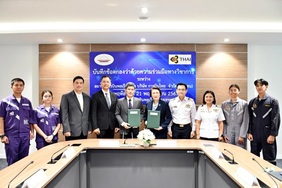 สถาบันการบินพลเรือน (สบพ.) รัฐวิสาหกิจ สังกัดกระทรวงคมนาคม จัดพิธีลงนามบันทึกข้อตกลงความร่วมมือทางวิชาการ (MOU) กับ บริษัท การบินไทย จำกัด (มหาชน) ว่าด้วยเรื่อง “การฝึกอบรมภาคปฏิบัติของหลักสูตรนายช่างภาคพื้นดินในสถานประกอบการจริง” โดยมี นางสาวภัคณัฏฐ์ มากช่วย ผู้ว่าการสถาบันการบินพลเรือน และนายเชิดพันธ์ โชติคุณ ประธานเจ้าหน้าที่สายช่าง บริษัท การบินไทย จำกัด (มหาชน) เป็นผู้ลงนาม MOU พร้อมด้วย ดร.วราภรณ์ เต็มแก้ว รองผู้ว่าการฝ่ายบริหาร ดร.พันศักดิ์ เนินทราย ผู้อำนวยการกองวิชาบริการการจราจรทางอากาศ รักษาการในตำแหน่งรองผู้ว่าการฝ่ายวิชาการ นายภพ บุณยะเวศ หัวหน้าฝ่ายฝึกอบรมบุคลากรช่าง บริษัท การบินไทย จำกัด (มหาชน) และคณะผู้บริหารจากสองหน่วยงาน ร่วมเป็นเกียรติในพิธี ในวันที่ 21 พฤศจิกายน 2567 ณ สบพ. กรุงเทพฯ