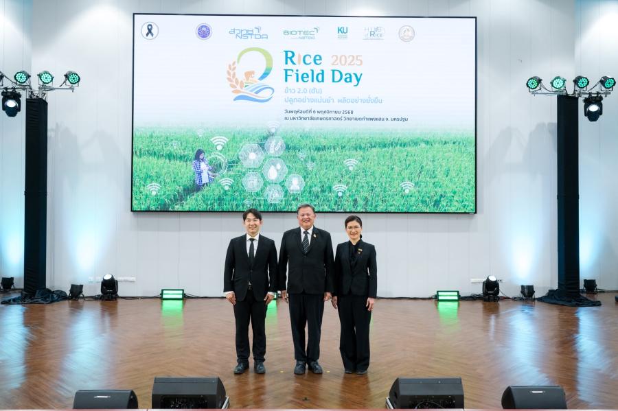 (6 พ.ย. 68) ณ มหาวิทยาลัยเกษตรศาสตร์ วิทยาเขตกำแพงแสน จ.นครปฐม - สำนักงานพัฒนาวิทยาศาสตร์และเทคโนโลยีแห่งชาติ (สวทช.) โดยศูนย์พันธุวิศวกรรมและเทคโนโลยีชีวภาพแห่งชาติ (ไบโอเทค) ร่วมกับมหาวิทยาลัยเกษตรศาสตร์ วิทยาเขตกำแพงแสน จัดงาน “NSTDA-KU Rice Field Day 2025” เป็นปีที่ 2 เพื่อนำเสนอความก้าวหน้าด้านเทคโนโลยีและนวัตกรรมการปรับปรุงพันธุ์ข้าวไทย ที่มุ่งนำวิทยาศาสตร์และเทคโนโลยีสู่การปฏิบัติจริง พลิกโฉมภาคเกษตรไทยให้ยั่งยืนและแข่งขันได้ในระดับโลก ภายในงานจัดแสดง “พันธุ์ข้าวนวัตกรรมผลผลิตสูงถึง 1.5 - 2 ตันต่อไร่” ที่มีอายุการเก็บเกี่ยวสั้น ต้านทานโรค-แมลง ทนสภาวะแวดล้อมวิกฤติ และเป็นมิตรต่อสิ่งแวดล้อม โดยมีพันธุ์ข้าวพร้อมใช้หรือพันธุ์ข้าวทางเลือกใหม่ ที่พัฒนาสำเร็จแล้วจำนวน 7 พันธุ์ ที่ได้รับการขึ้นทะเบียนพันธุ์จากกรมวิชาการเกษตร (รพ.2) และมี 3 พันธุ์อยู่ระหว่างการขอรับรองพันธุ์จากกรมการข้าว ได้แก่ ข้าวเจ้าพันธุ์หอมสยาม พันธุ์หอมสยาม 2 พันธุ์หอมชลสิทธิ์ 2 พันธุ์ไบโอเทค 1 และมีข้าวเหนียวพันธุ์น่าน 59 พันธุ์หอมนาคา รวมถึงข้าวโภชนาการที่ดี พันธุ์ไรซ์เบอรี่ 2 เพื่อเป็นทางเลือกให้แก่เกษตรกรในการผลิตข้าวผลผลิตสูง มีศักยภาพรองรับสภาวะแวดล้อมวิกฤติ ลดการปล่อยก๊าซเรือนกระจก และเป็นมิตรต่อสิ่งแวดล้อม