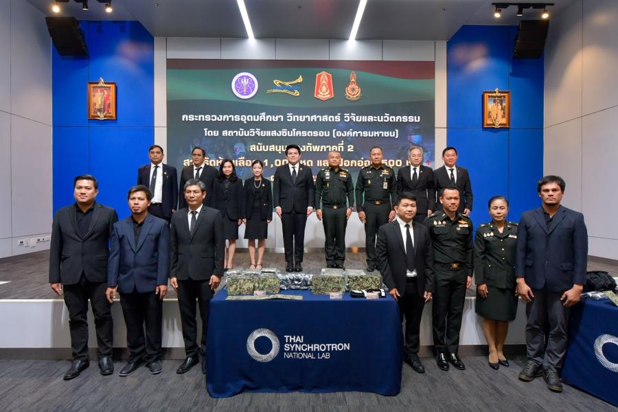 กรุงเทพมหานคร – นายสุรศักดิ์ พันธ์เจริญวรกุล รัฐมนตรีว่าการกระทรวงการอุดมศึกษา วิทยาศาสตร์ วิจัย และนวัตกรรม เป็นประธานในพิธีมอบสายรัดห้ามเลือด 1000 ชุด และเฝือกอ่อนจำนวน 500 ชุด ที่ร่วมพัฒนาโดยความร่วมมือระหว่างสถาบันวิจัยแสงซินโครตรอนและโรงพยาบาลค่ายสุรนารี เพื่อใช้ในราชการสนามแก่ กองทัพภาคที่ 2 โดยมี พลโท วีระยุทธ รักศิลป์ แม่ทัพภาคที่ 2 เป็นผู้รับมอบ เมื่อวันที่ 7 ตุลาคม 2568 ณ กระทรวงการอุดมศึกษา วิทยาศาสตร์ วิจัย และนวัตกรรม ซอยโยธี กรุงเทพฯ