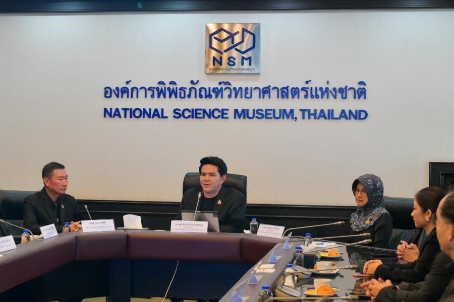 วันที่ 11 พ.ย.68 ที่องค์การพิพิธภัณฑ์วิทยาศาสตร์แห่งชาติ (อพวช.) หรือ NSM นายสุรศักดิ์ พันธ์เจริญวรกุล รมว.การอุดมศึกษา วิทยาศาสตร์ วิจัยและนวัตกรรม(อว.) เป็นประธานมอบนโยบายให้กับผู้บริหาร อพวช. หรือ NSM โดยมี พญ.เพชรดาว โต๊ะมีนา ผู้ช่วย รมว.กระทรวง อว. นายพิษณุ พลธี ที่ปรึกษา รมว.กระทรวง อว. น.ส.พิมพ์พร ชีวานันท์ เลขานุการ รมว.กระทรวง อว. นายสุวรงค์ วงษ์ศิริ รักษาการแทน ผอ.NSM และผู้บริหาร NSM เข้าร่วม