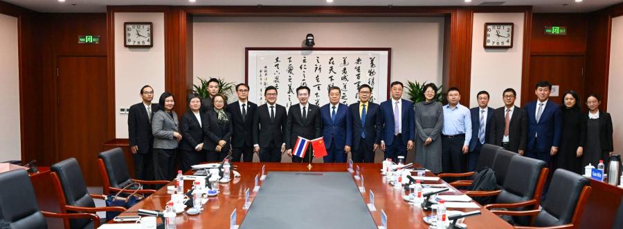 วันที่ 26 พ.ย.ศ.ดร. ศุภชัย ปทุมนากุล ปลัดกระทรวงการอุดมศึกษา วิทยาศาสตร์ วิจัยและนวัตกรรม(อว.) เป็นประธานการประชุมคณะกรรมการความร่วมมือไทย - จีนด้านวิทยาศาสตร์และเทคโนโลยี ครั้งที่ 5 ร่วมกับ ดร. เฉิน เจียฉาง ผู้ช่วยรัฐมนตรีว่าการกระทรวงวิทยาศาสตร์และเทคโนโลยี สาธารณรัฐประชาชนจีน ณ กระทรวงวิทยาศาสตร์และเทคโนโลยี กรุงปักกิ่ง โดยมีคณะผู้แทนของกระทรวง อว.เข้าร่วมการประชุมได้แก่ ผศ.ดร.วิภู รุโจปการ ผอ.สถาบันวิจัยดาราศาสตร์แห่งชาติ (สดร.) ดร.ชัย วุฒิวิวัฒน์ชัย ผอ.ศูนย์เทคโนโลยีอิเล็กทรอนิกส์และคอมพิวเตอร์แห่งชาติ สำนักงานพัฒนาวิทยาศาสตร์และเทคโนโลยีแห่งชาติ (พว.) ดร.ลักษมณ สมานสินธุ์ ผอ.กองการต่างประเทศ สป.อว. ดร.พสุภา ชินวรโสภาค อัครราชทูตที่ปรึกษา (ฝ่ายการอุดมศึกษาวิทยาศาสตร์ วิจัยและนวัตกรรม) ประจำสถานเอกอัครราชทูต ณ กรุงปักกิ่ง และผู้แทนจากสำนักงานพัฒนาเทคโนโลยีอวกาศและภูมิสารสนเทศ (สทอภ.) โดยการประชุมคณะกรรมการความร่วมมือไทย-จีนครั้งนี้จัดในวาระที่ครบรอบ 50 ปีแห่งการสถาปนาความสัมพันธ์ทางการทูตไทย-จีน โดยทั้งสองฝ่ายได้มีการแลกเปลี่ยนเชิงนโยบายการพัฒนาวิทยาศาสตร์และเทคโนโลยี การรายงานผลการดำเนินงานของคณะทำงานร่วมไทย-จีนและหารือถึงกรอบความร่วมมือในอนาคต