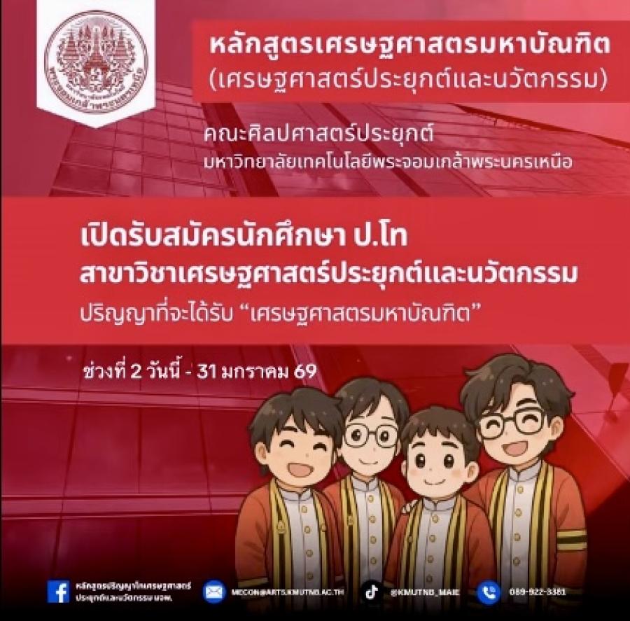 มจพ. เปิดรับ ป.โท เศรษฐศาสตร์ประยุกต์ฯ ภาค 2/2569