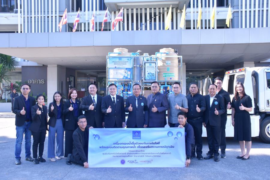 (วันที่ 16 ธันวาคม 2568) ณ การประปาส่วนภูมิภาค สำนักงานใหญ่: กระทรวงการอุดมศึกษา วิทยาศาสตร์ วิจัยและนวัตกรรม (อว.) โดย ศูนย์นาโนเทคโนโลยีแห่งชาติ (นาโนเทค) สำนักงานพัฒนาวิทยาศาสตร์และเทคโนโลยีแห่งชาติ (สวทช.) ส่งมอบเครื่องกรองน้ำดื่มด้วยนาโนเทคโนโลยีพร้อมระบบติดตามคุณภาพน้ำเพื่อรองรับสถานการณ์ฉุกเฉิน กำลังการผลิต 250 ลิตรต่อชั่วโมง จำนวน 10 เครื่อง ให้แก่การประปาส่วนภูมิภาค (กปภ.) ชูจุดเด่นด้านระบบกรองที่ออกแบบตามองค์ประกอบของน้ำดิบ ใช้งานและบำรุงรักษาง่าย สามารถติดตั้งในพื้นที่เกิดเหตุการณ์ได้ทันที รวมถึงเคลื่อนย้ายได้ สนับสนุนภารกิจให้บริการน้ำดื่มแก่ผู้ประสบอุทกภัยหาดใหญ่ ขับเคลื่อน วทน. สู่การใช้ประโยชน์จริง ร่วมช่วยเหลือ แก้ไขปัญหา บรรเทาผลกระทบในช่วงวิกฤต